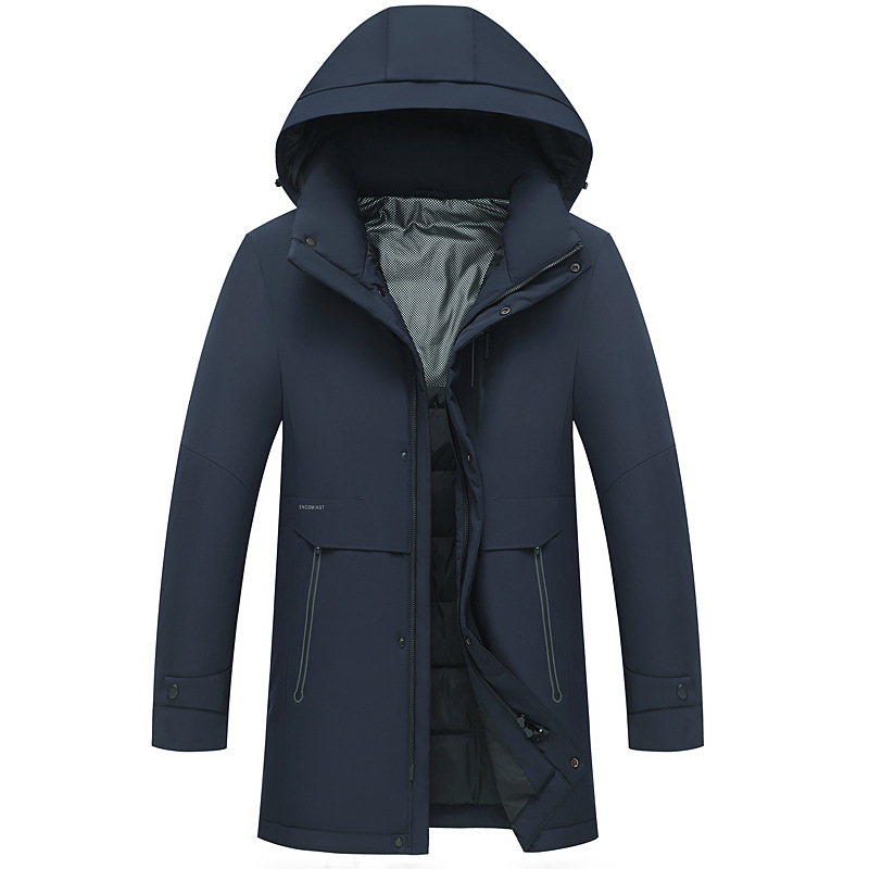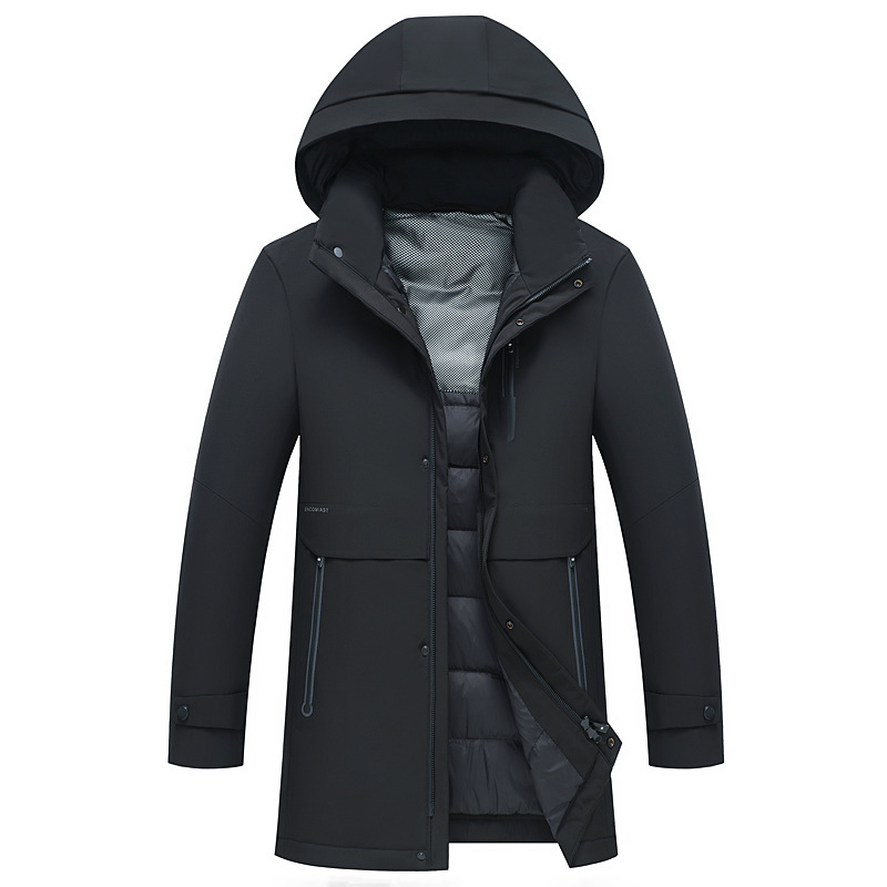男士羽绒服中长款加厚中年冬季90%白鸭绒保暖连帽外套