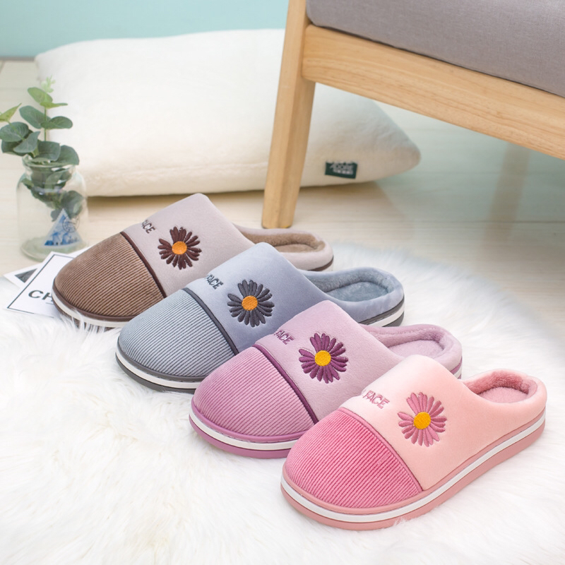 新款舒适软底冬季保暖棉拖鞋情侣防滑菊花家居棉拖