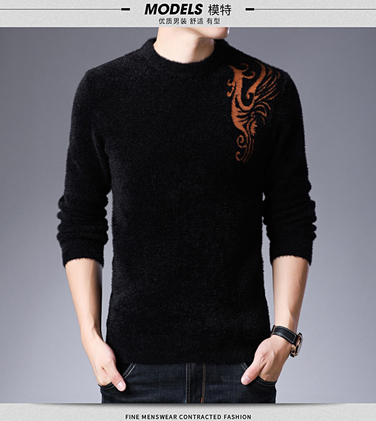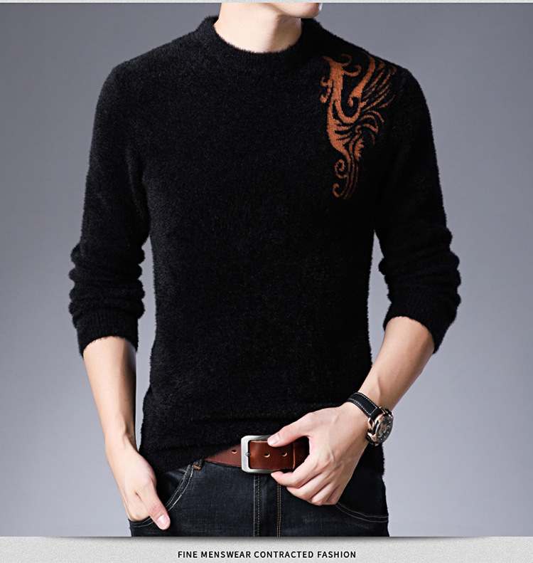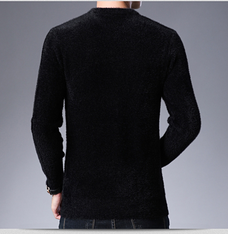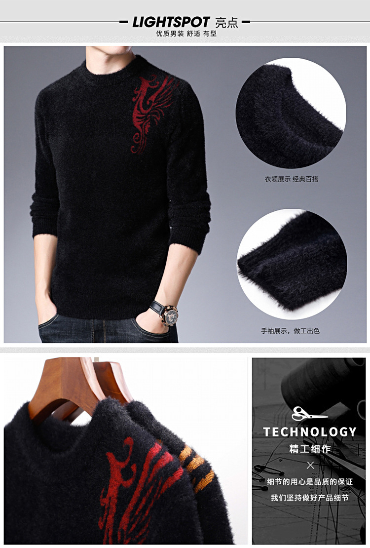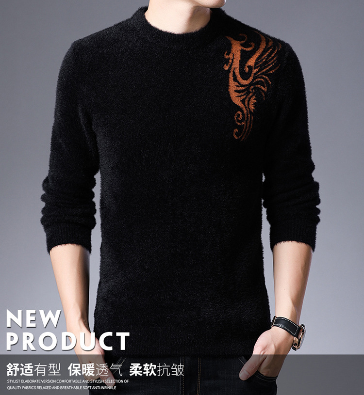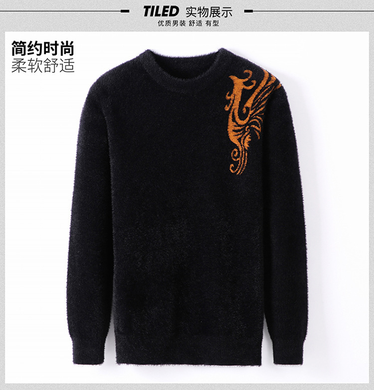 秋冬季加厚仿貂绒毛衣男青中年保暖打底衫圆领提花宽松针织衫批发