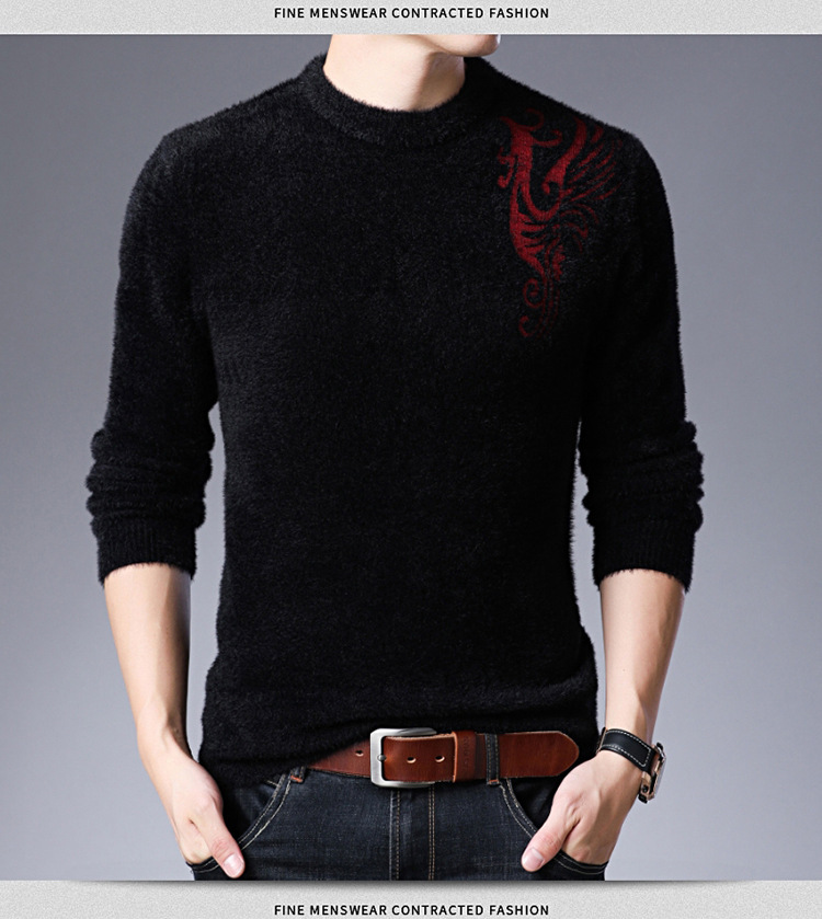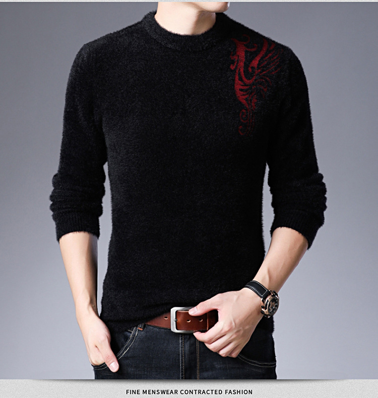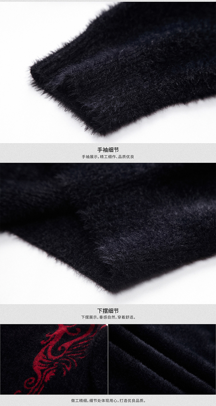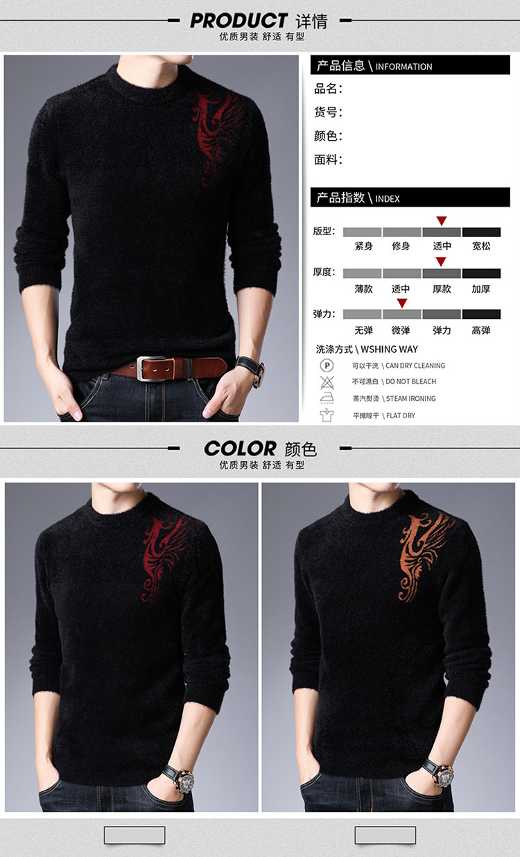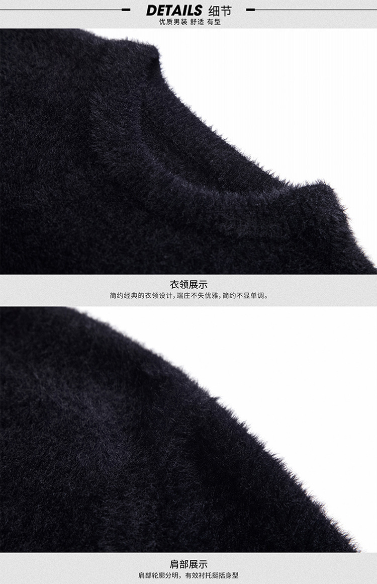 秋冬季加厚仿貂绒毛衣男青中年保暖打底衫圆领提花宽松针织衫批发