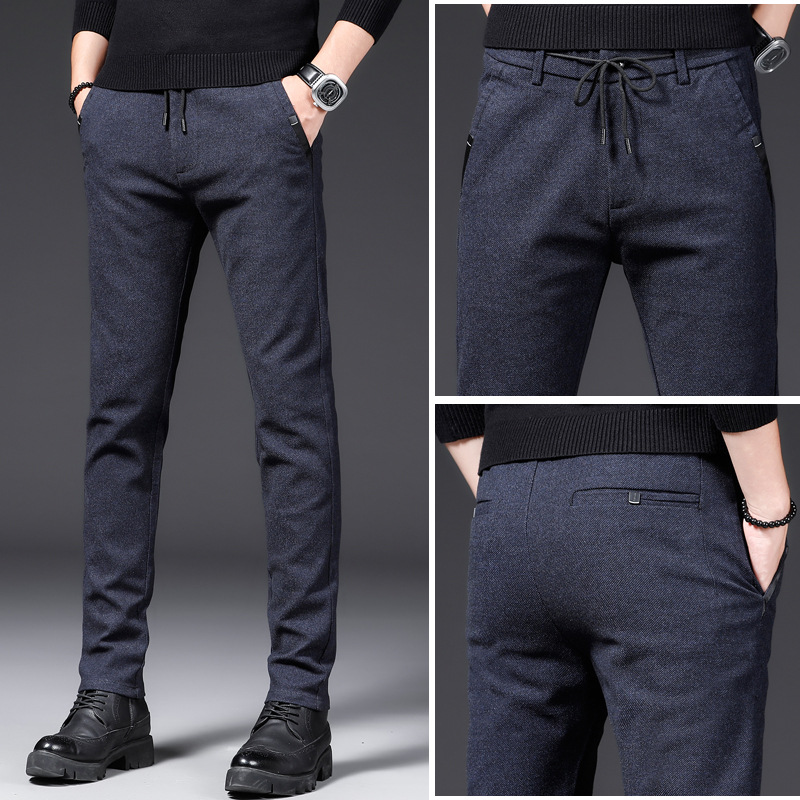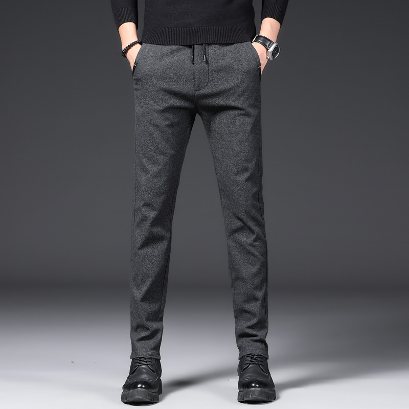 秋冬厚款棉麻磨毛休闲裤男小直筒修身弹力男裤子青年潮流男装批发