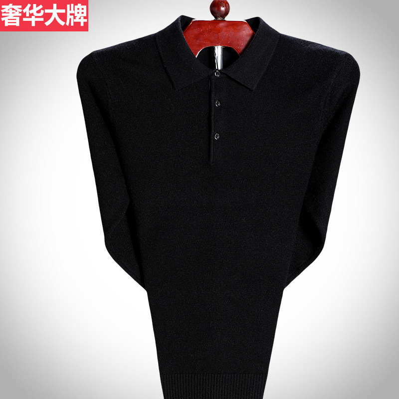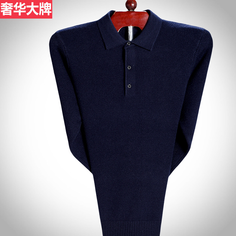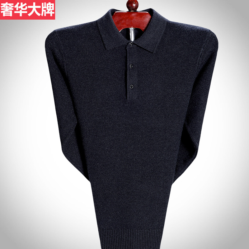 品牌羊绒衫毛衣男翻领针织衫男冬季男士套头纯色打底衫男中年上衣
