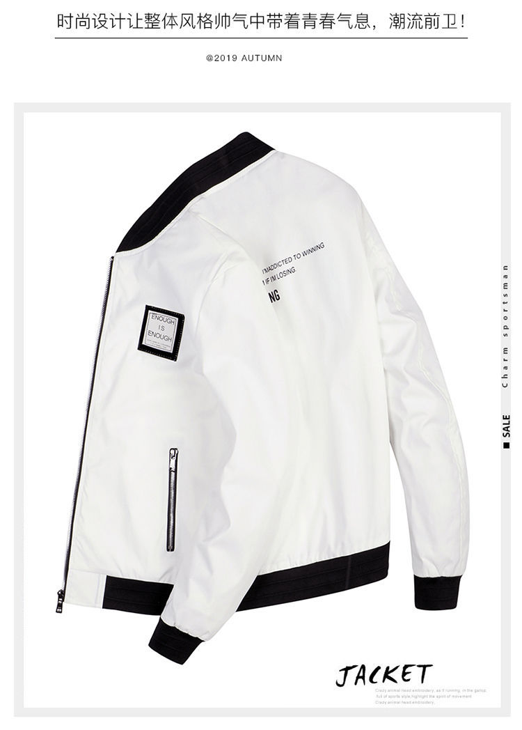 男士夹克白色外套夹克衫棒球服飞行员潮流春季加肥加大码胖子男装
