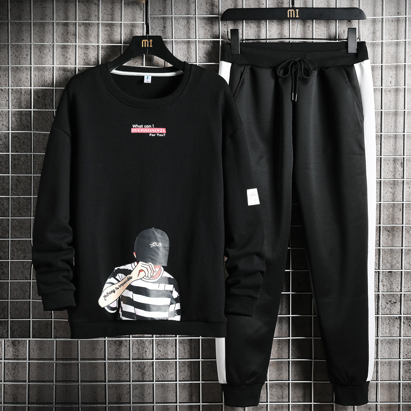 2020时尚新款秋冬季休闲圆领卫衣两件套ins潮流宽松百搭运动套装