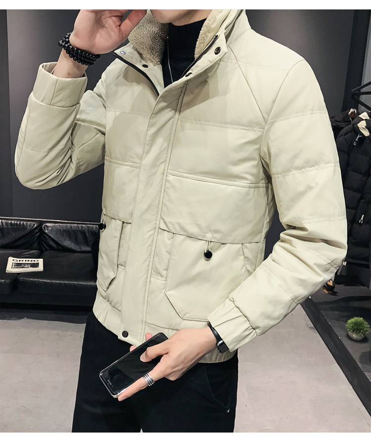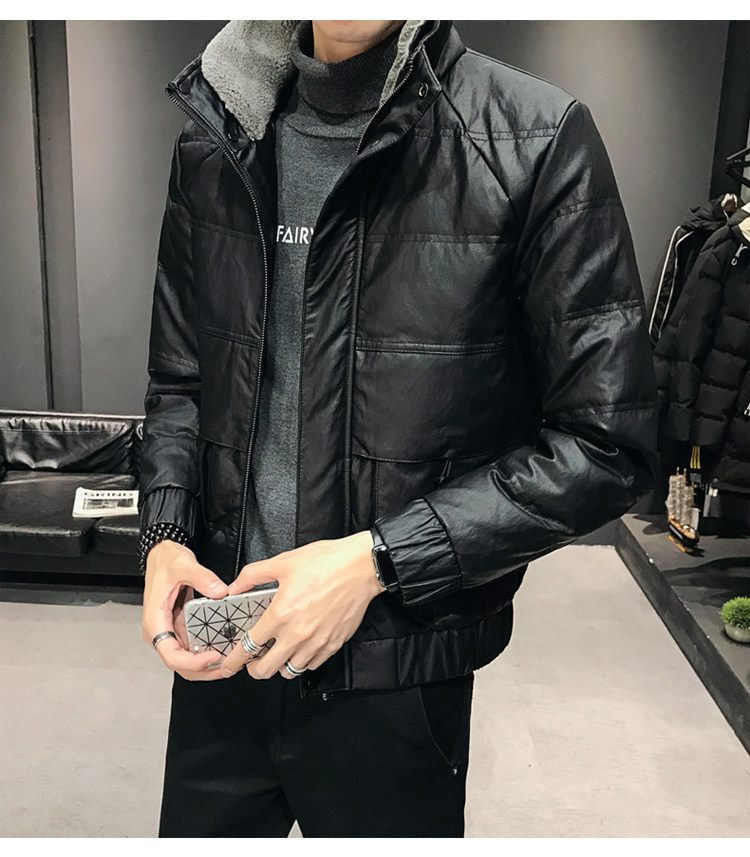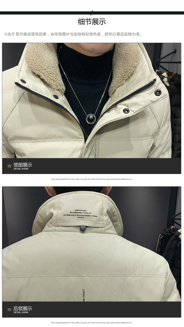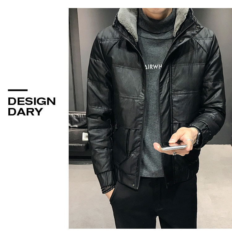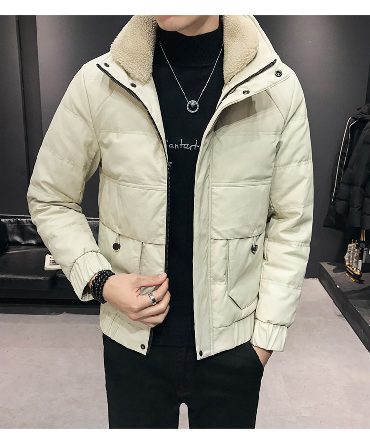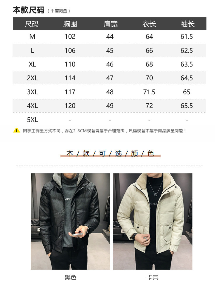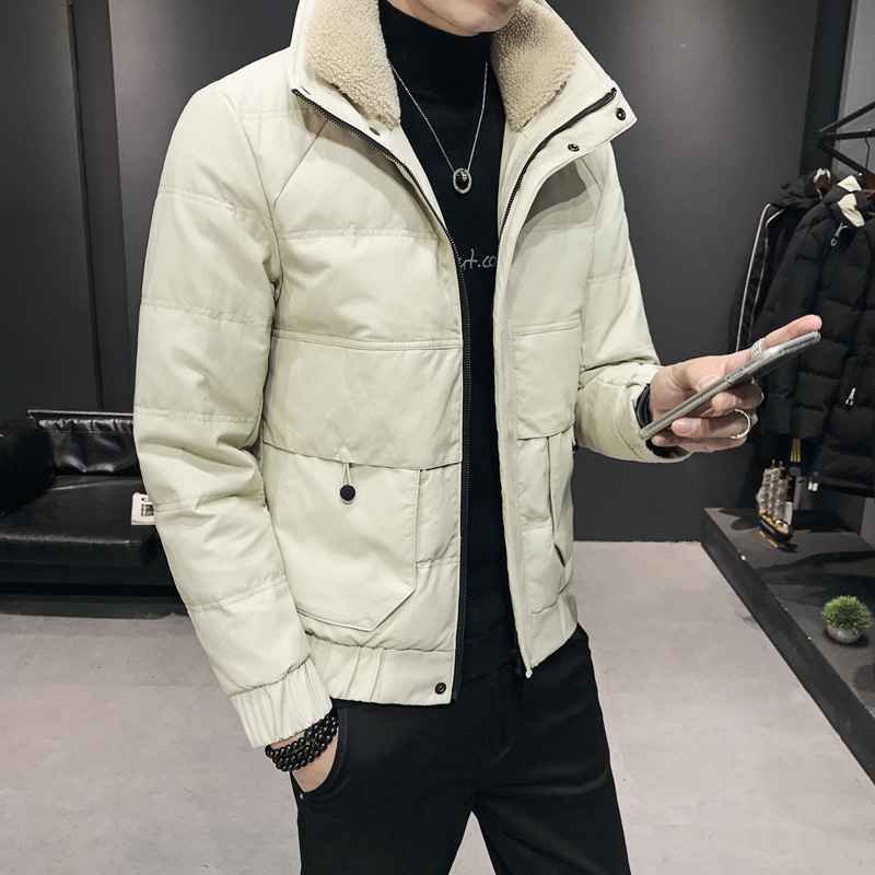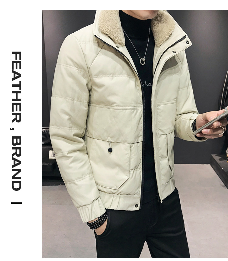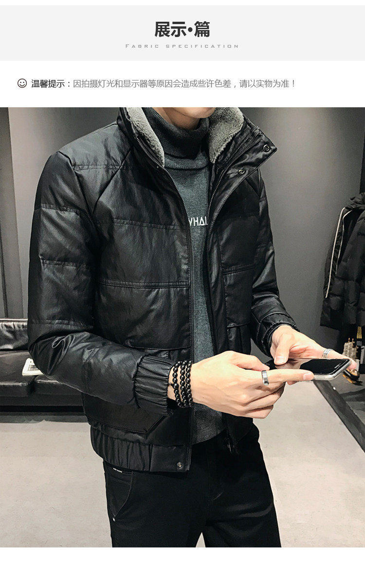 M-4XL 70绒韩版修身男士羽绒衣服短款羊羔毛立领皮衣保暖外套大码