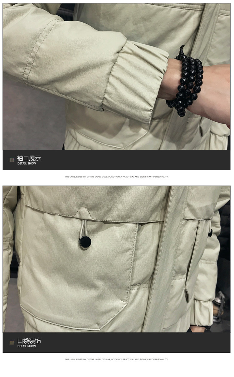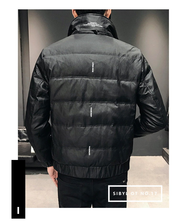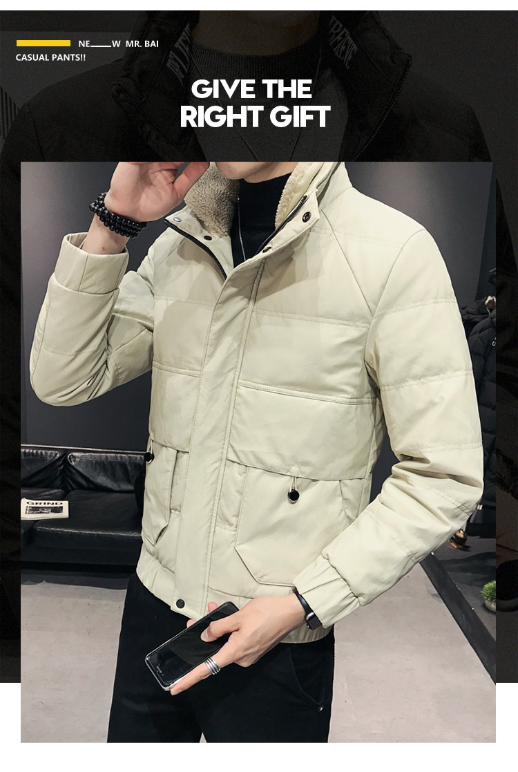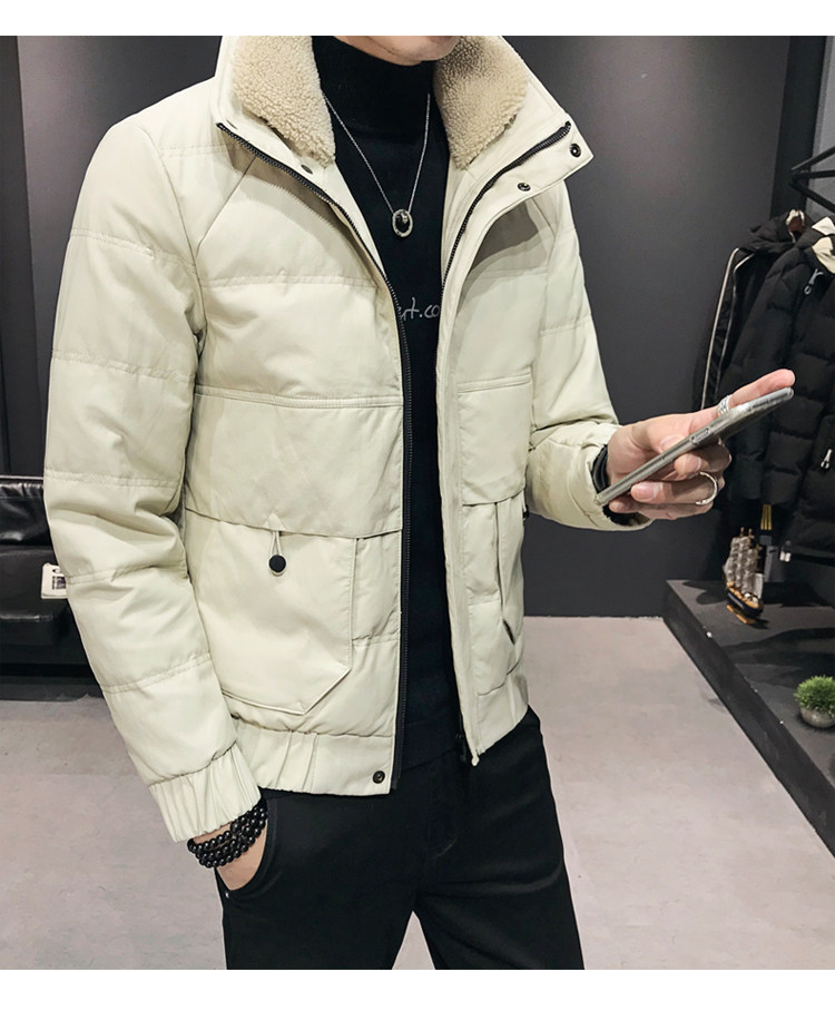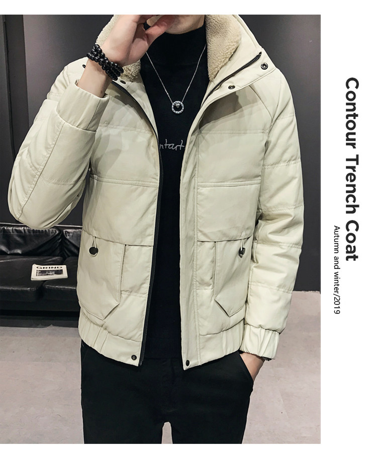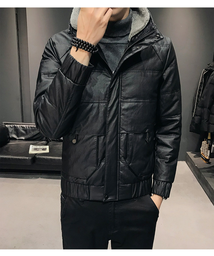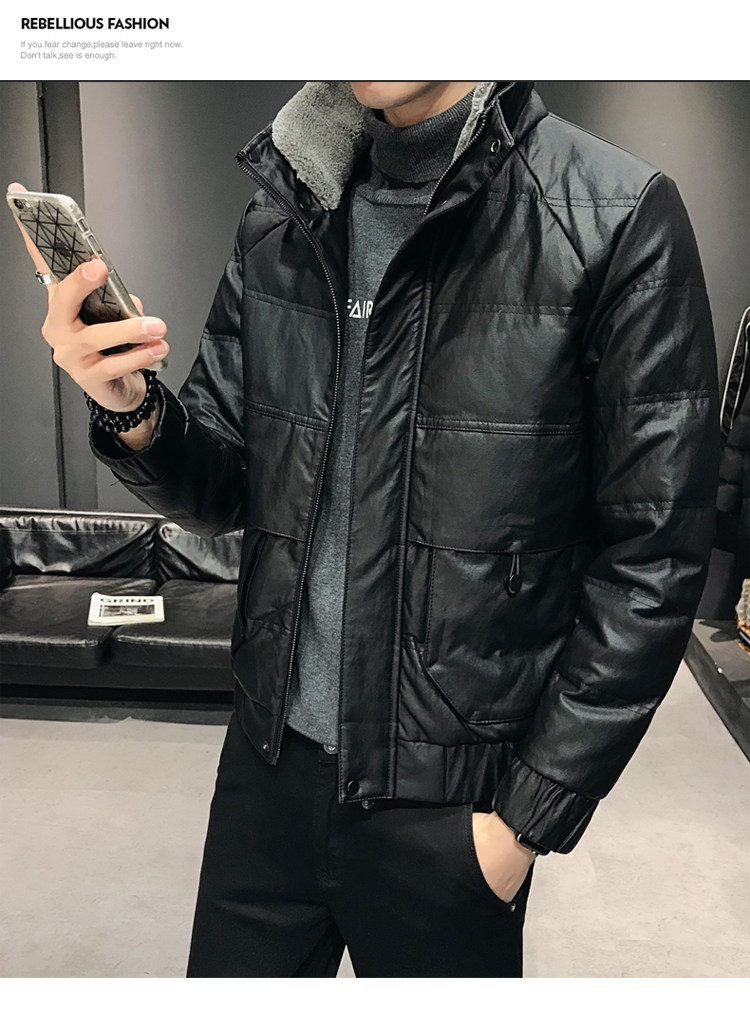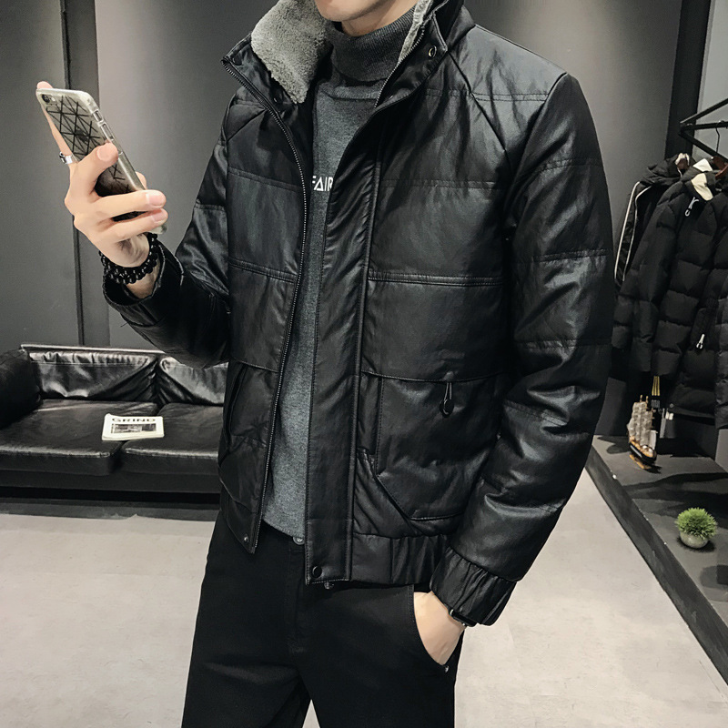 M-4XL 70绒韩版修身男士羽绒衣服短款羊羔毛立领皮衣保暖外套大码