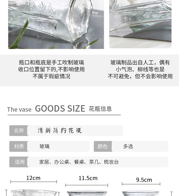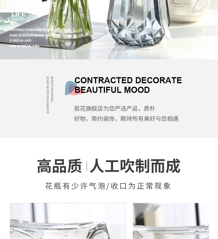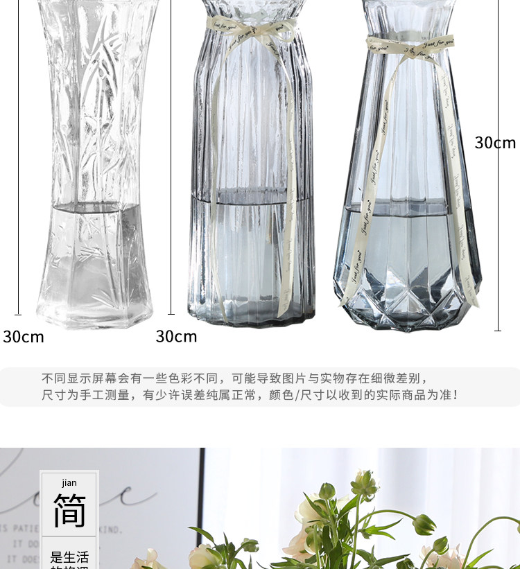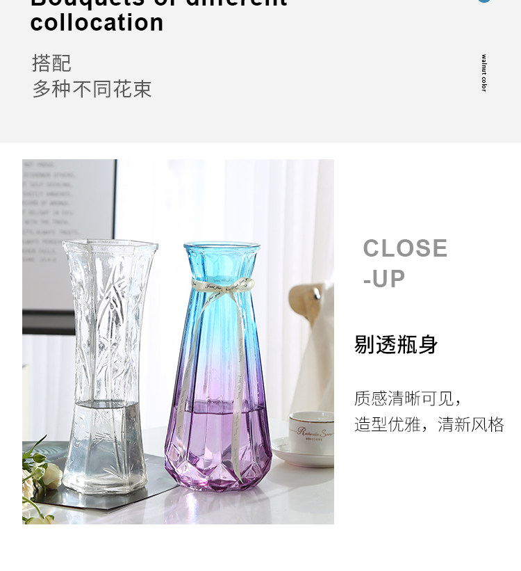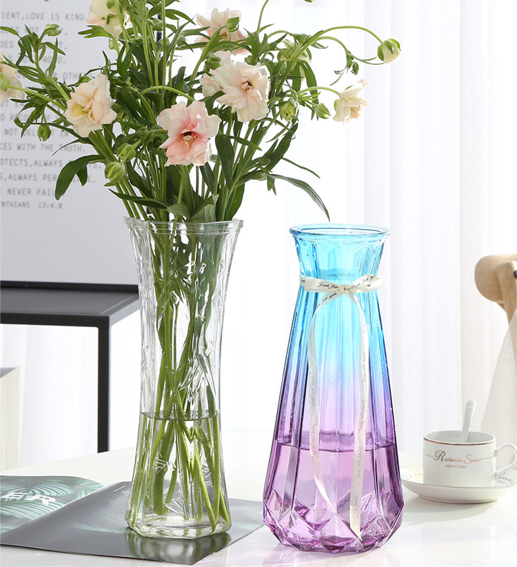 欧式玻璃花瓶水养富贵竹百合花插花花瓶客厅摆件