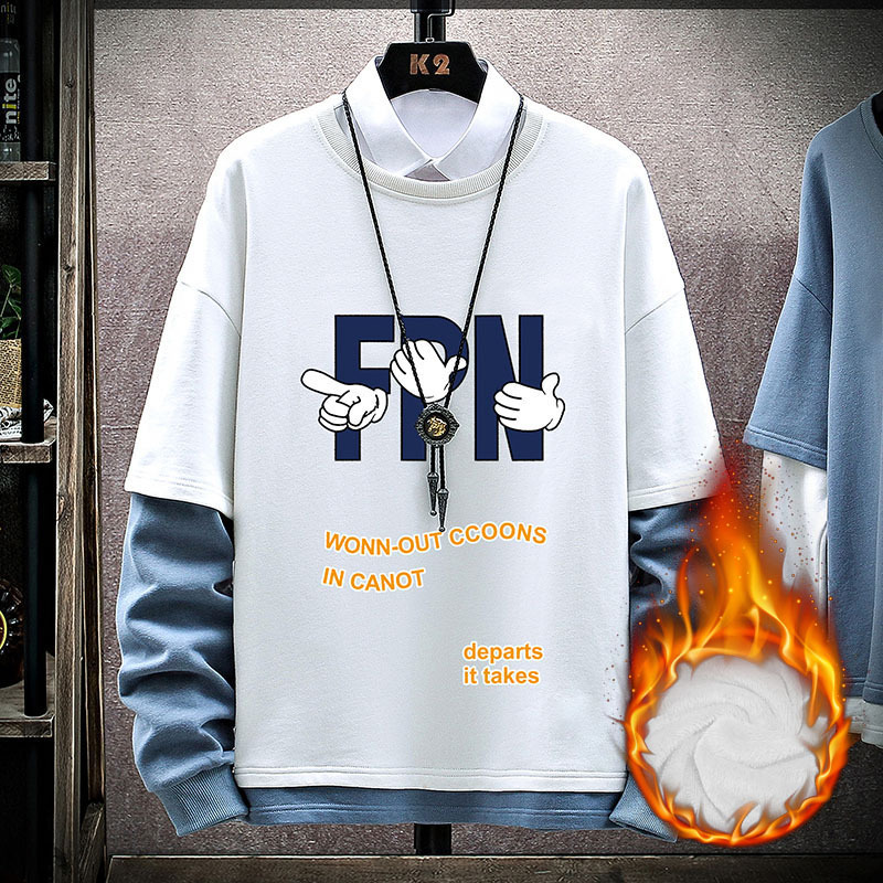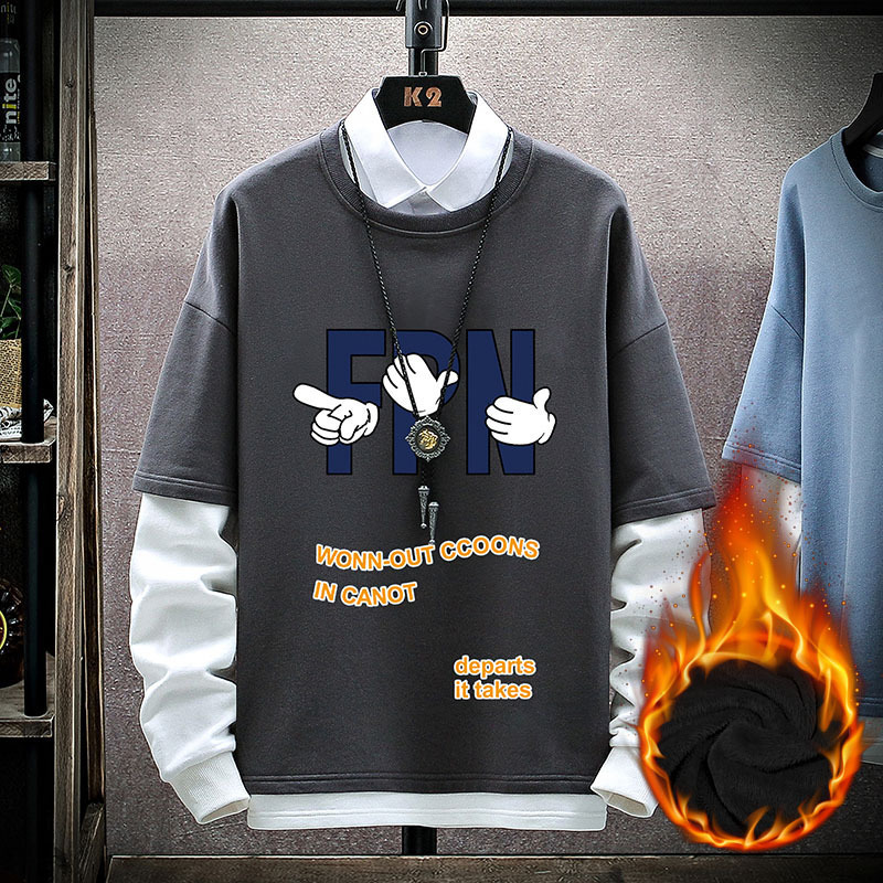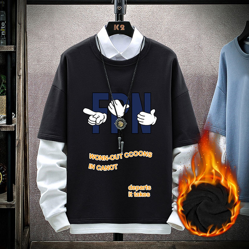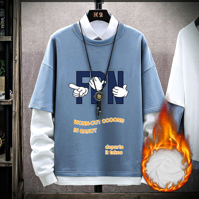 秋季潮流男士加绒卫衣长袖新款男士休闲卫衣宽松青年男士加绒卫衣