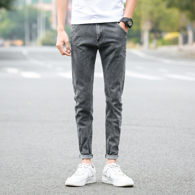 春秋新款牛仔男士灰色弹力小脚裤韩版时尚修身男式牛仔裤批发代发