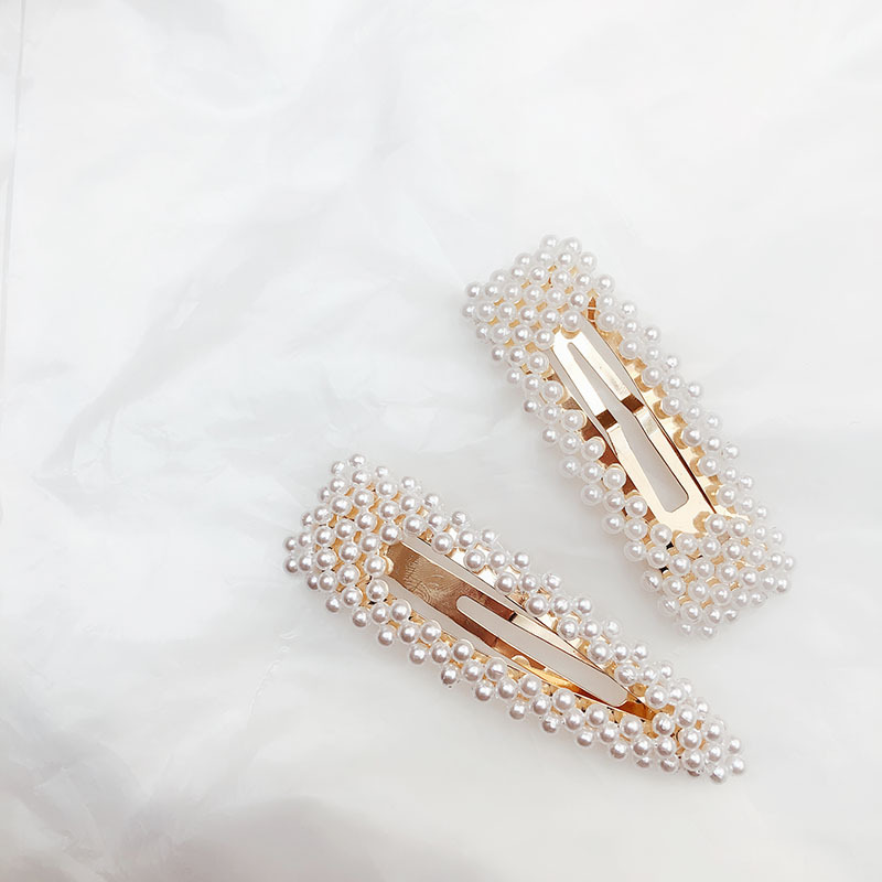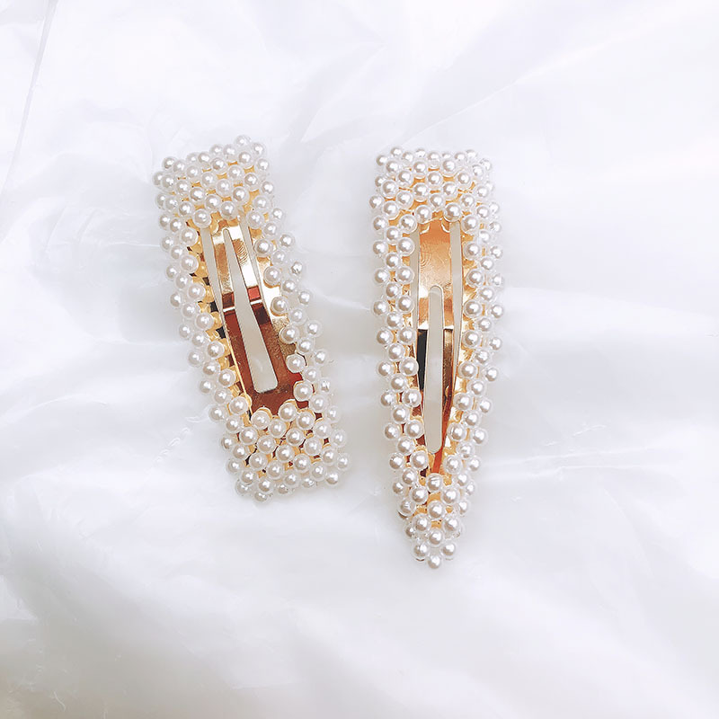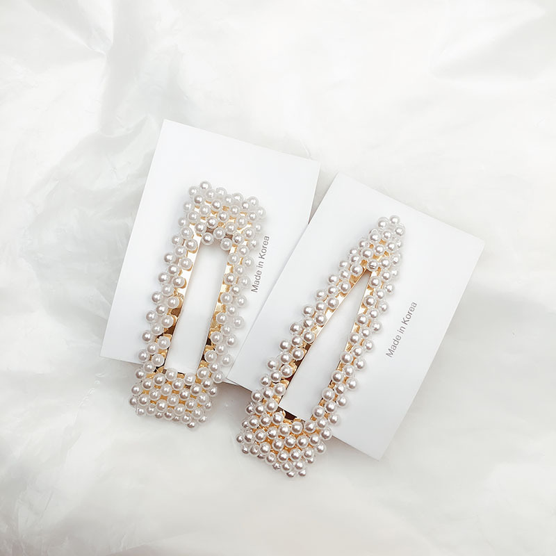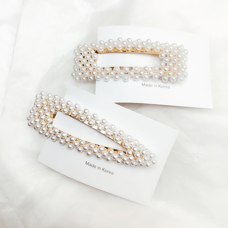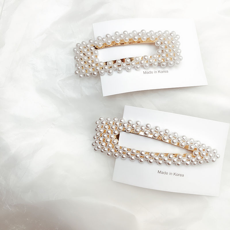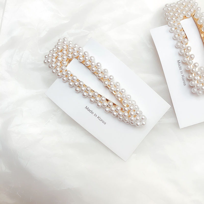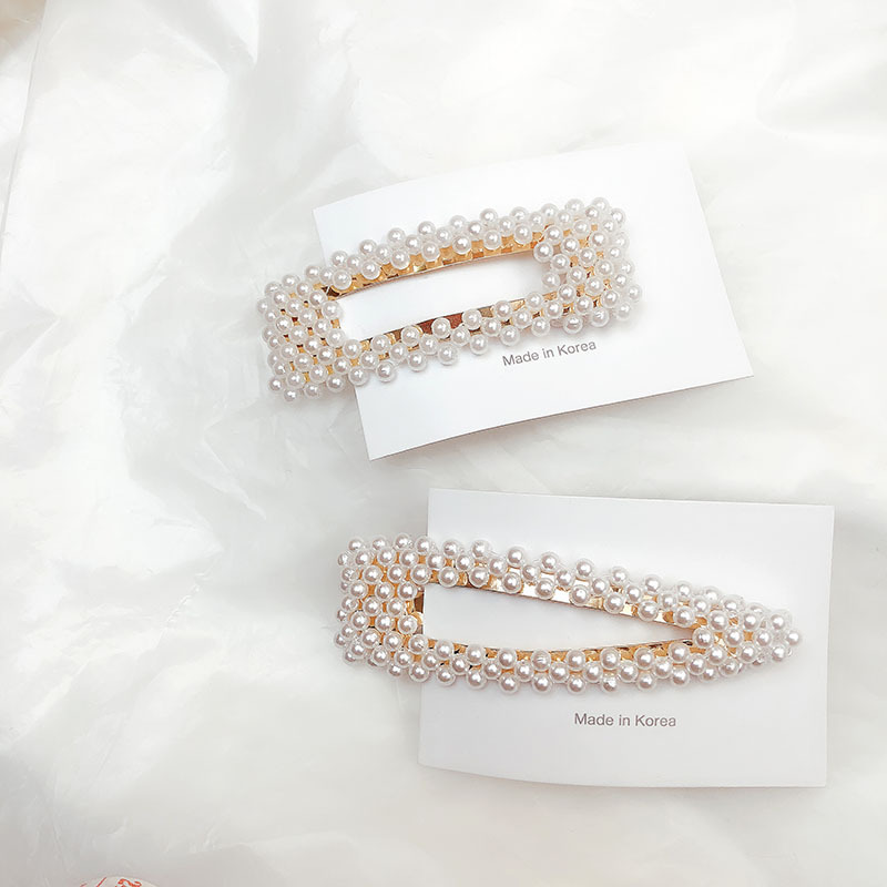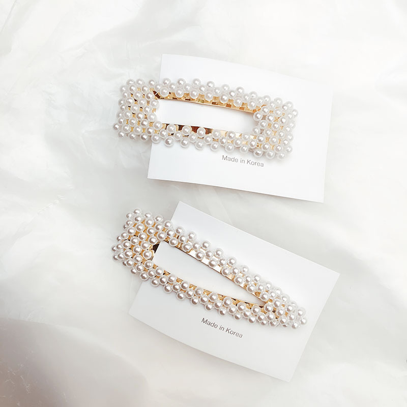 韩国东大门同款发夹淘宝网红款少女珍珠bb夹大号镀金边夹