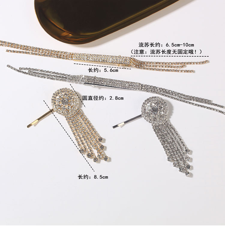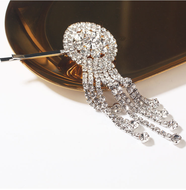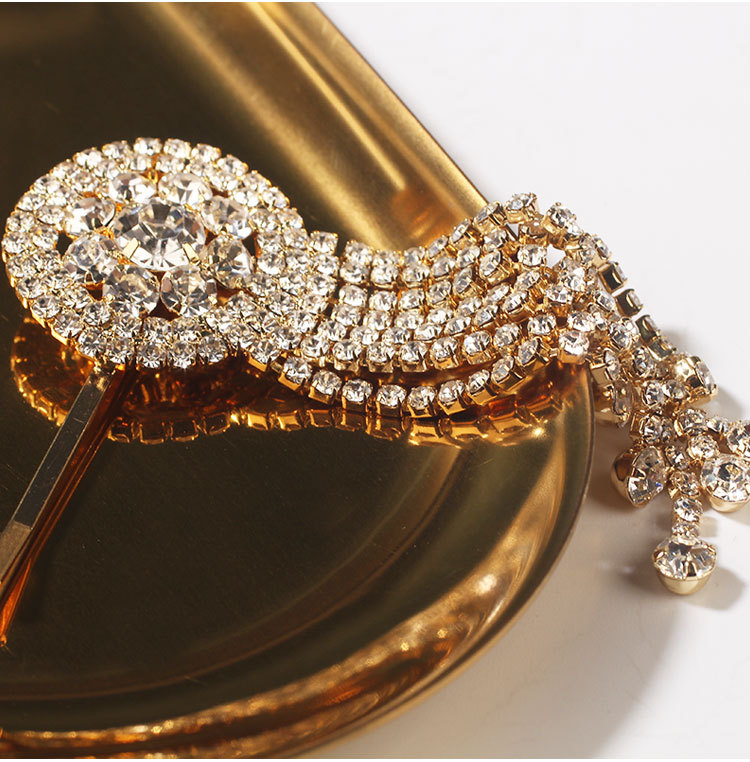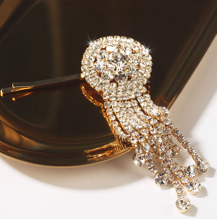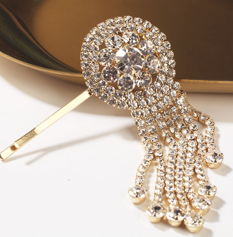外贸头饰 欧美满钻流苏发夹镶钻一字夹 刘海夹 边夹发卡