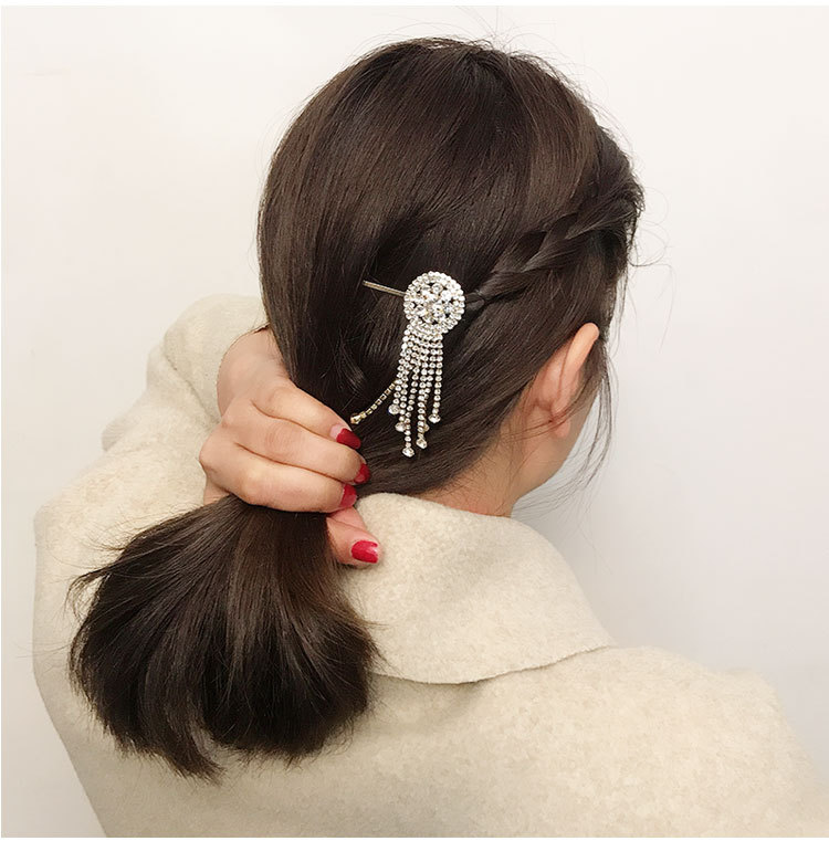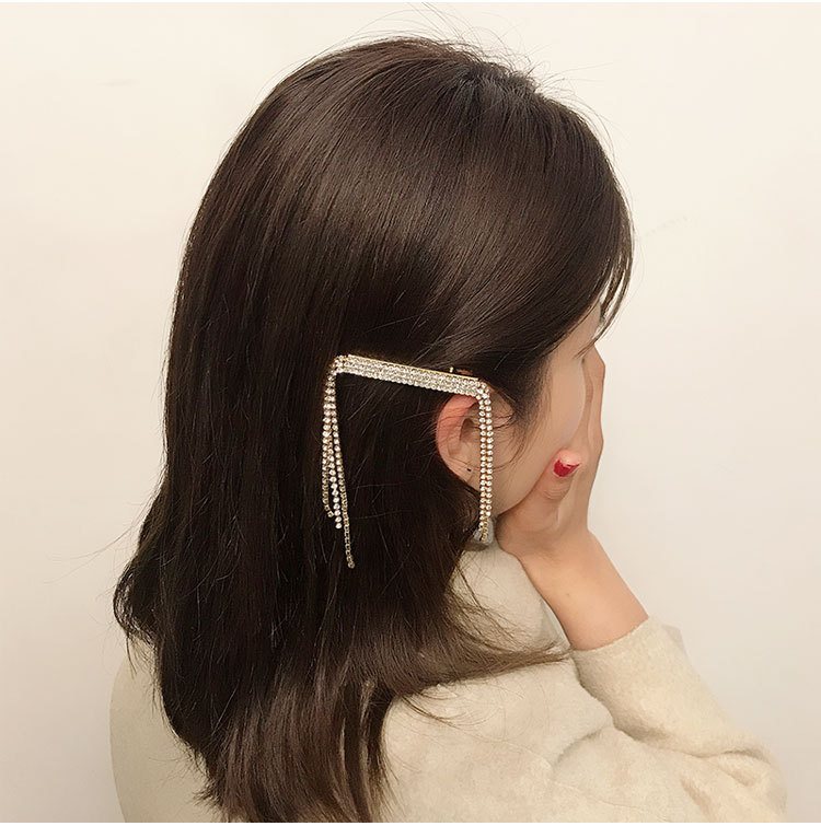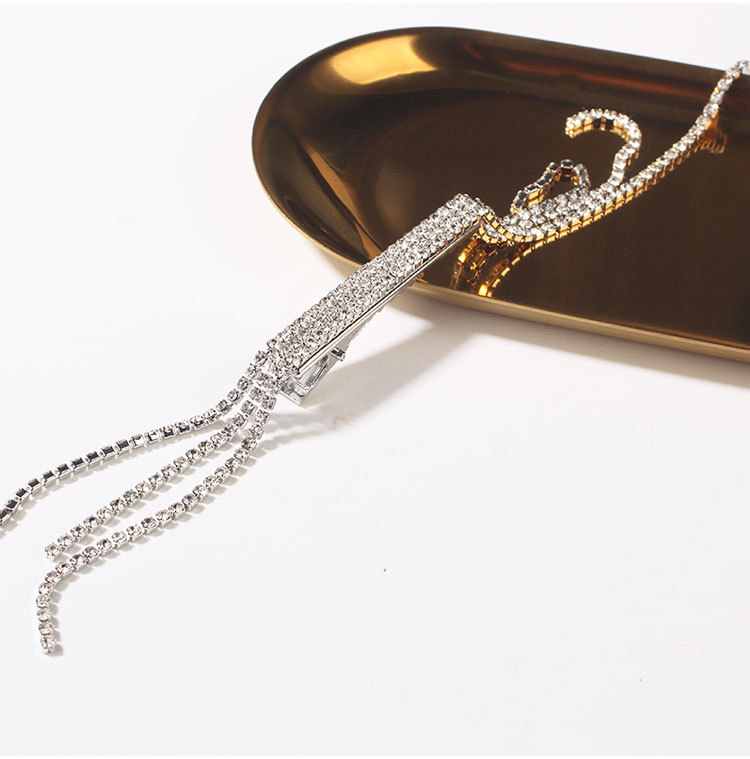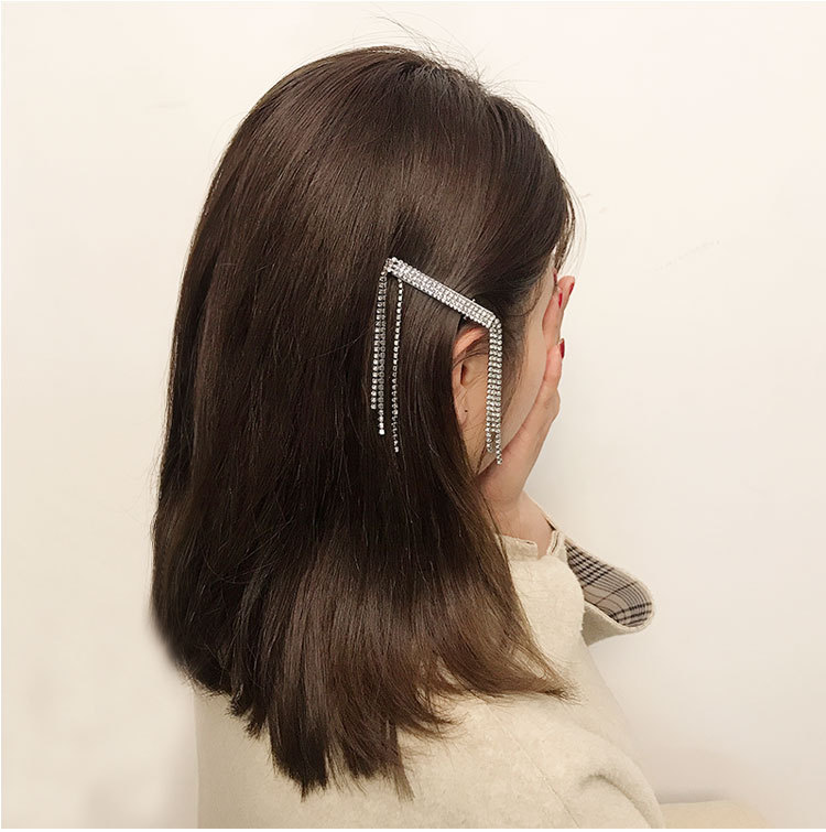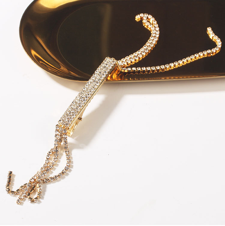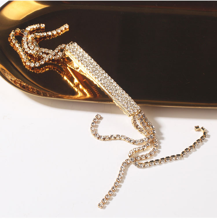 外贸头饰 欧美满钻流苏发夹镶钻一字夹 刘海夹 边夹发卡
