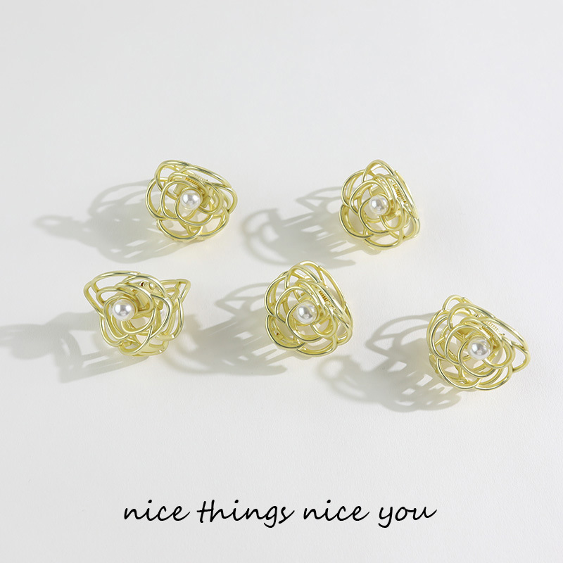 日系ins发夹小抓夹花朵珍珠金属风简约百搭发卡顶夹碎发韩国头饰