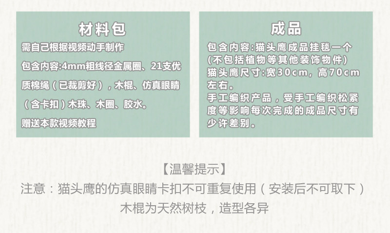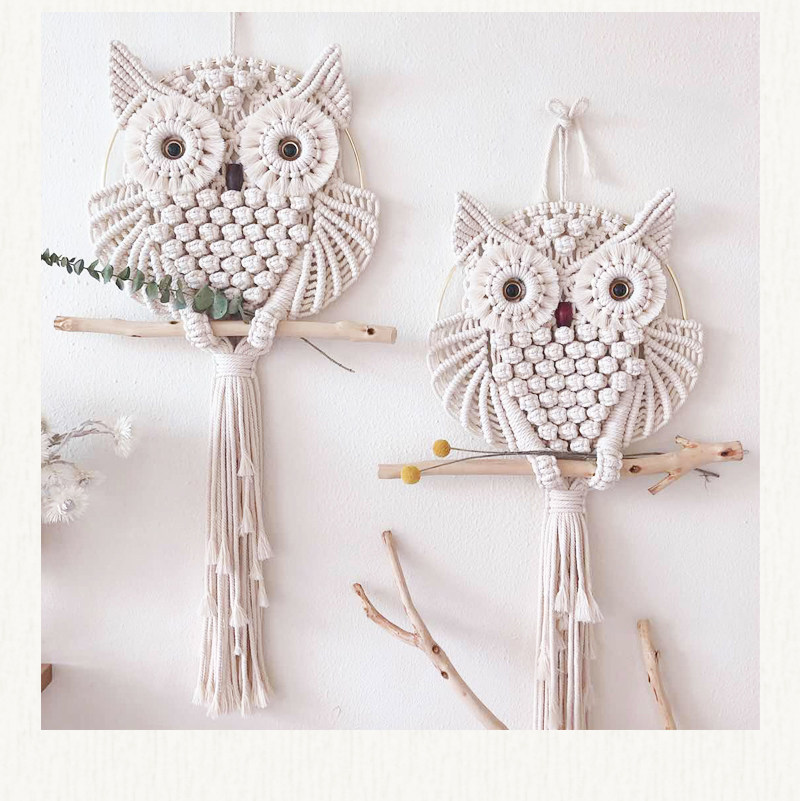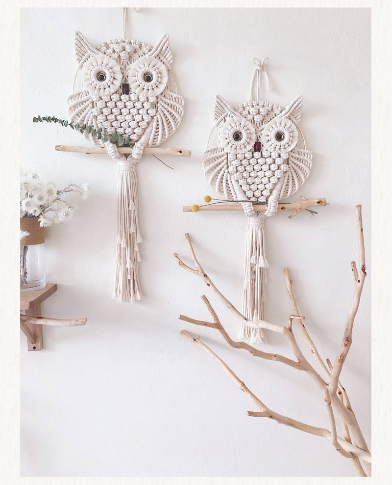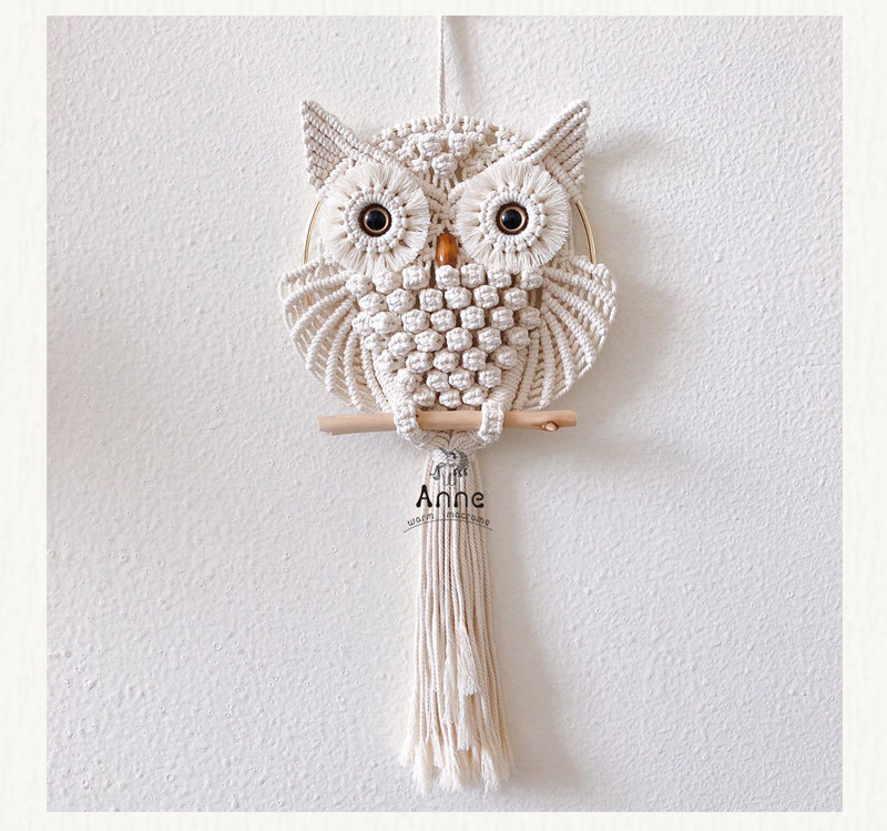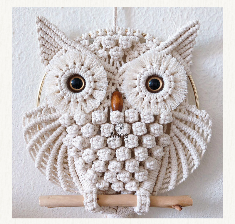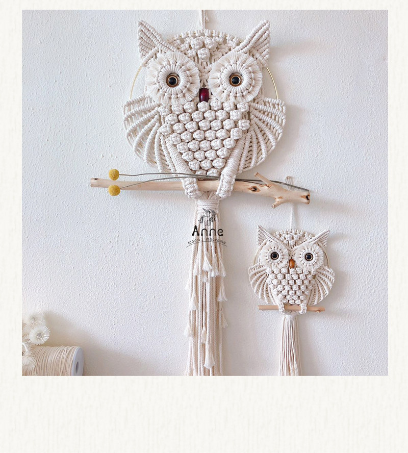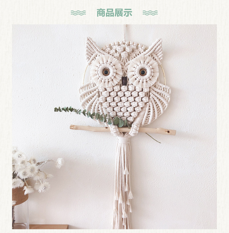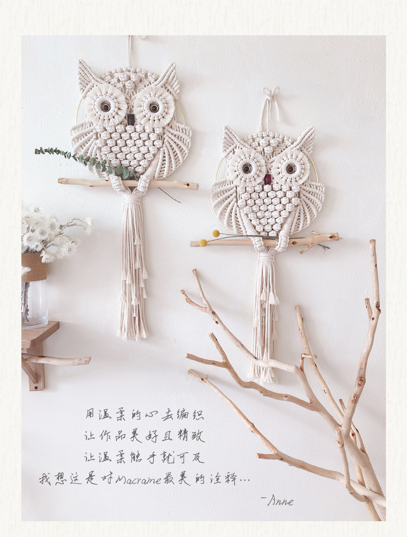 安然 macrame原创仿真眼猫头鹰挂毯手工编织材料包ins家居壁饰