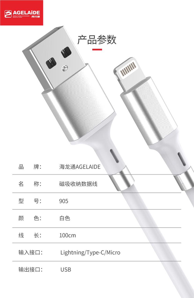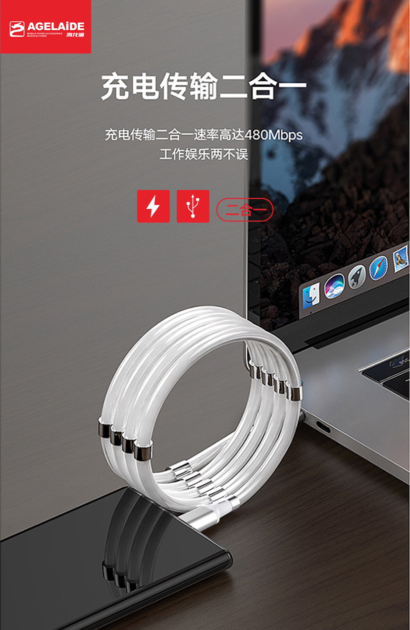 磁吸收纳硅胶快充充电线适用苹果 安卓 华为 手机魔绳USB 数据线