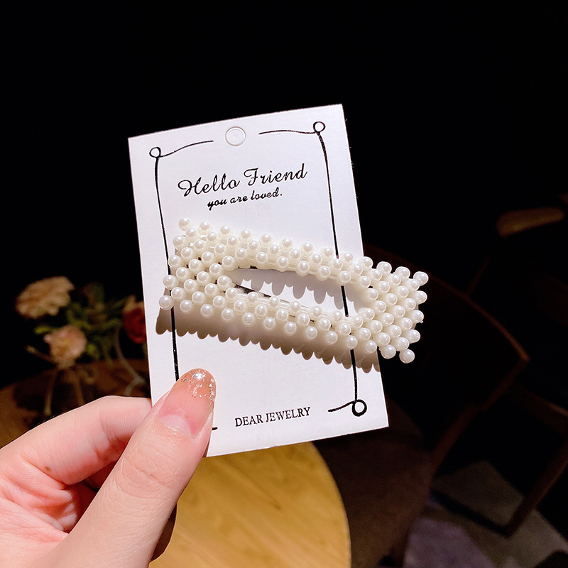 韩版ins网红珍珠水滴发夹气质女士侧边刘海一字夹少女心bb夹发卡