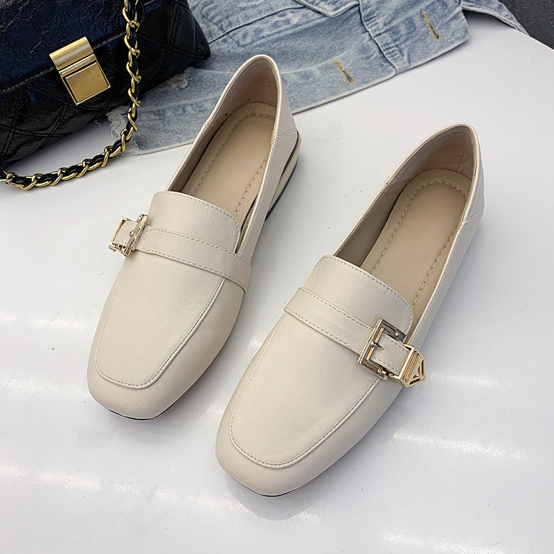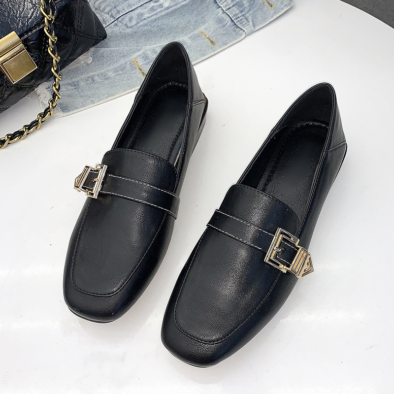 单鞋女2021年春季新款英伦风潮小皮鞋一脚蹬休闲百搭平底豆豆女鞋