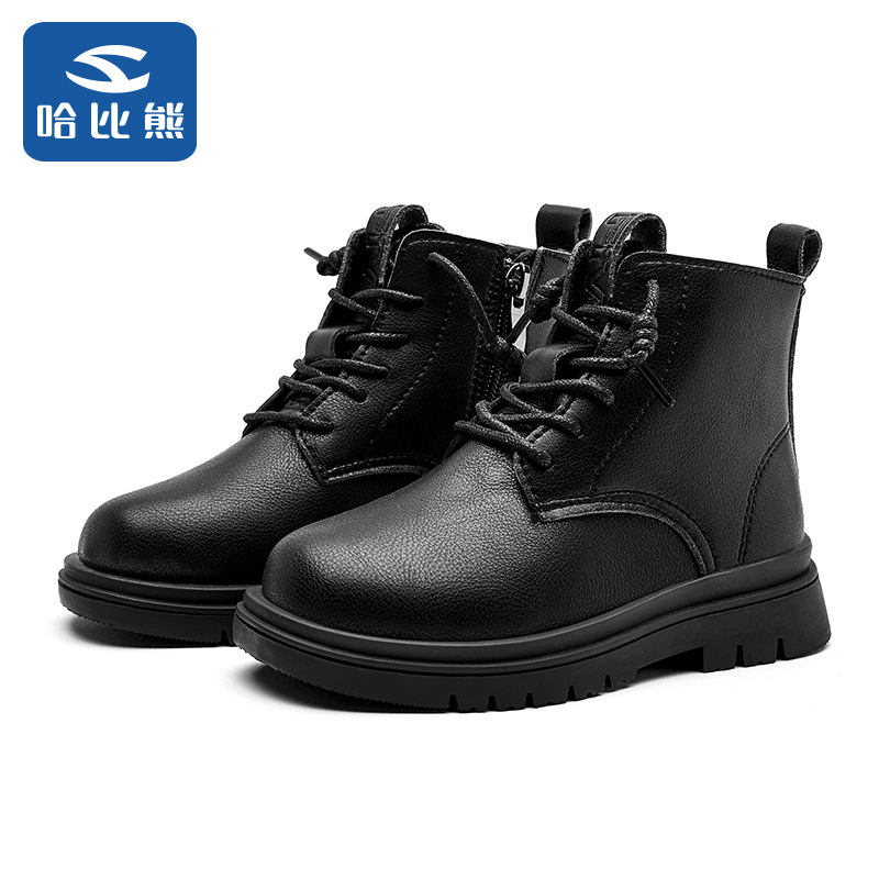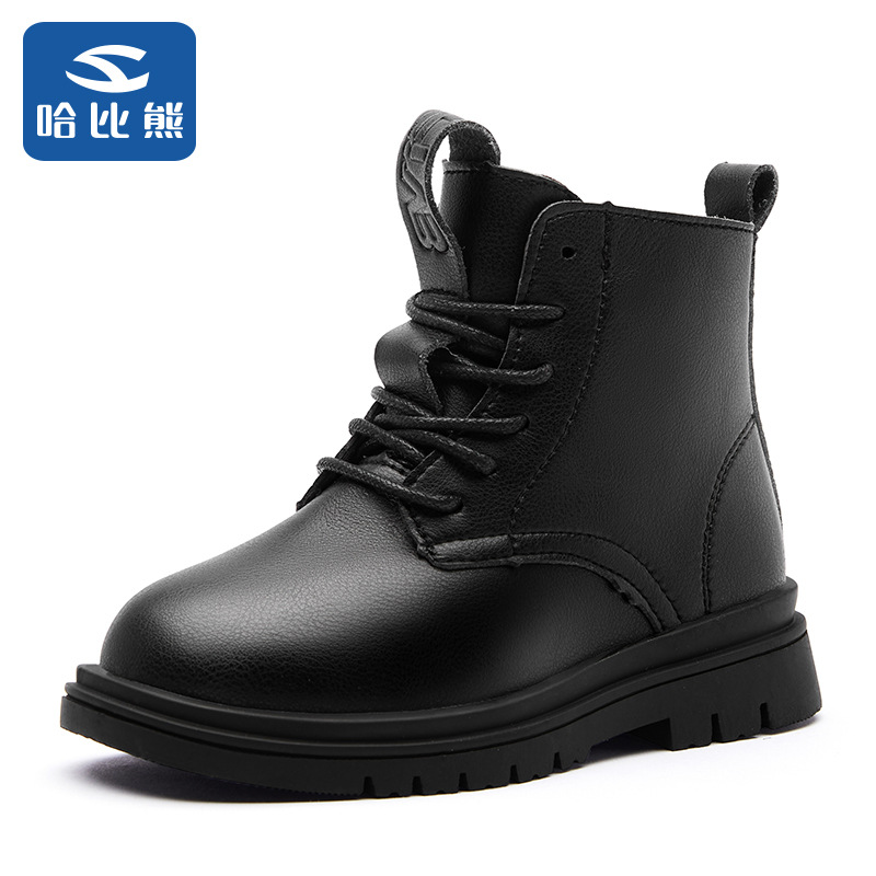 哈比熊品牌加绒女童靴子2020冬新款男童时尚单鞋防滑防水英伦鞋子