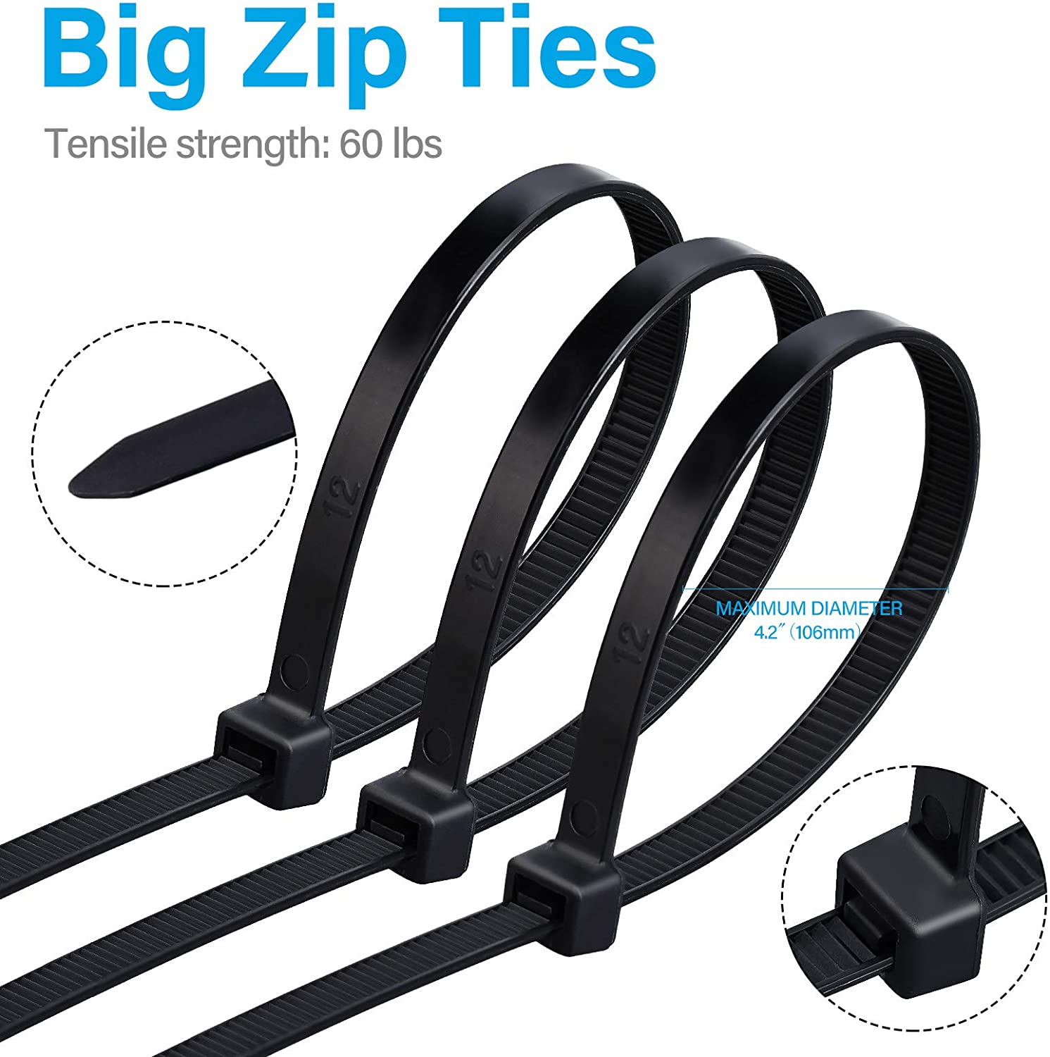 电缆拉链扎带长20.35cm宽100磅尼龙重型抗拉强度自锁PA66UL94V-2