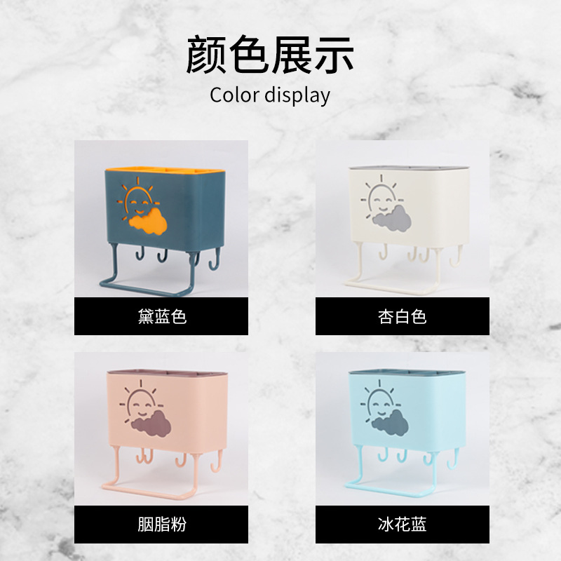 无痕带杆筷笼多功能双色无痕贴筷子筒可拆洗厨房筷子笼带钩抹布架