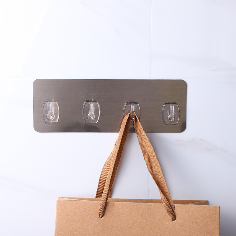 创意无痕OPP拉丝四排水晶树杈钩加厚无痕4连排钩厨房浴室挂钩粘钩