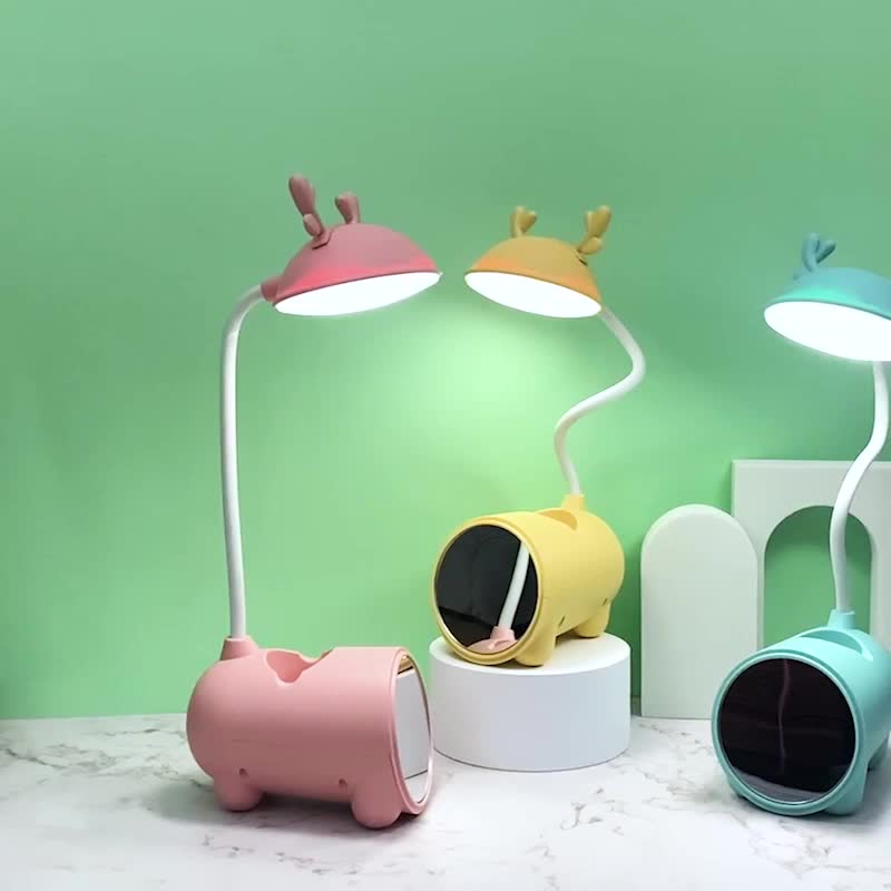 可爱兔子学生桌面学习办公LED小鹿笔筒台灯触摸三档护眼USB充电灯