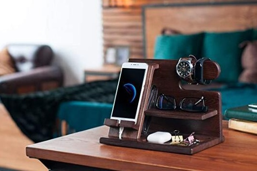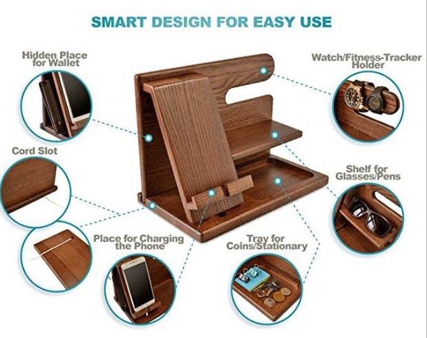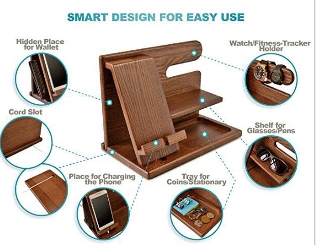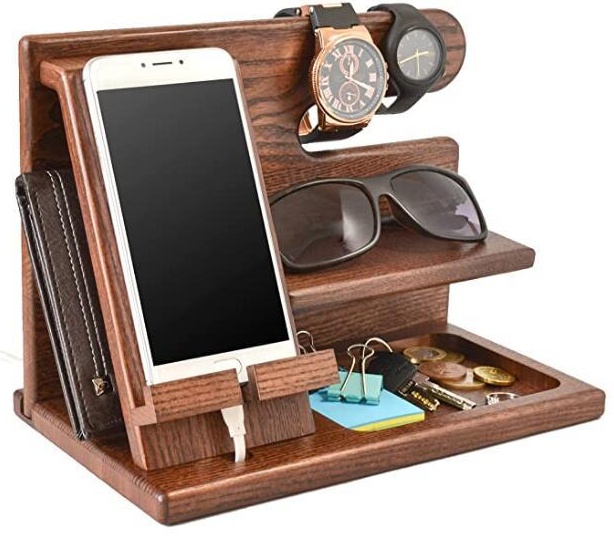 木制钥匙扣钱包支架手表男士礼物生日床头柜钱包平板电脑收纳盒