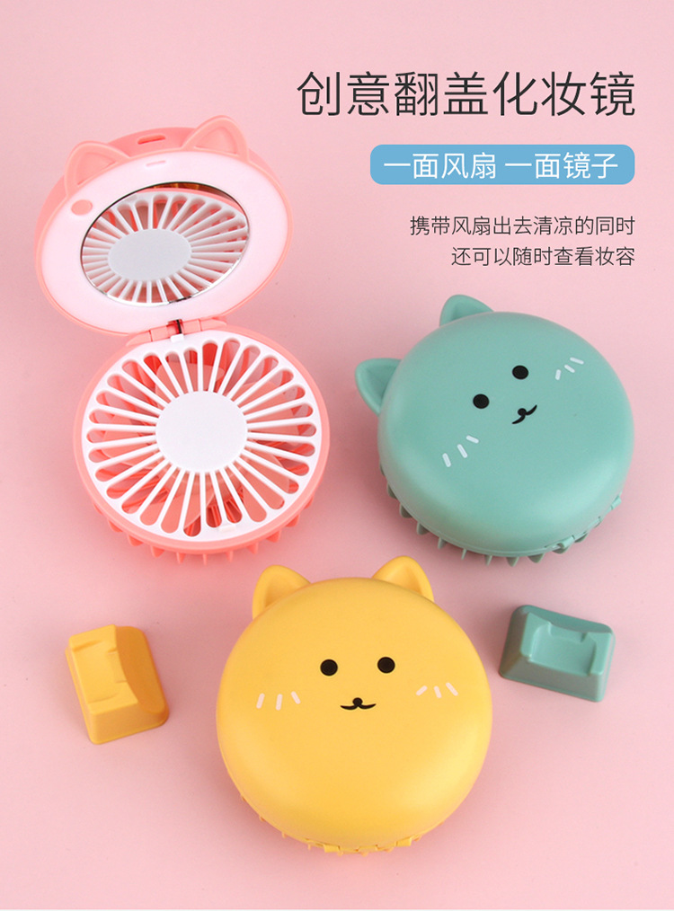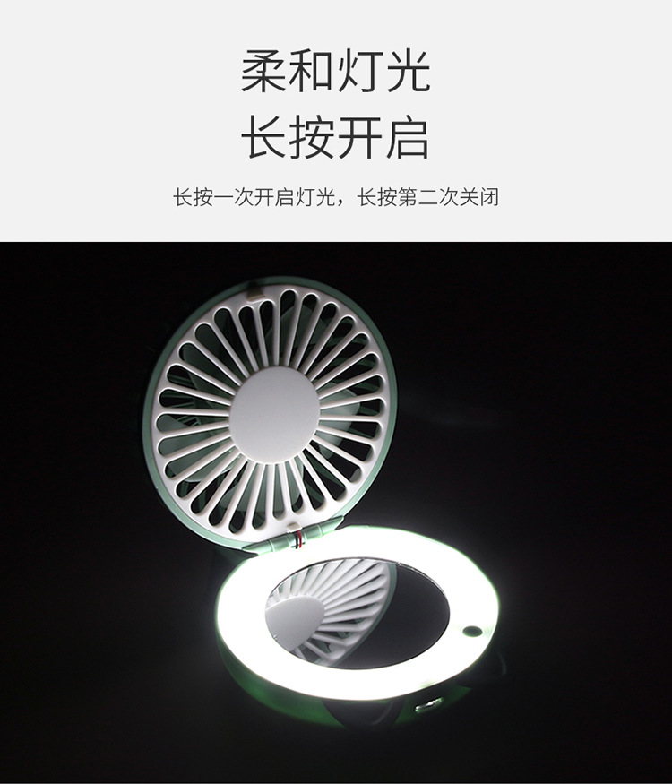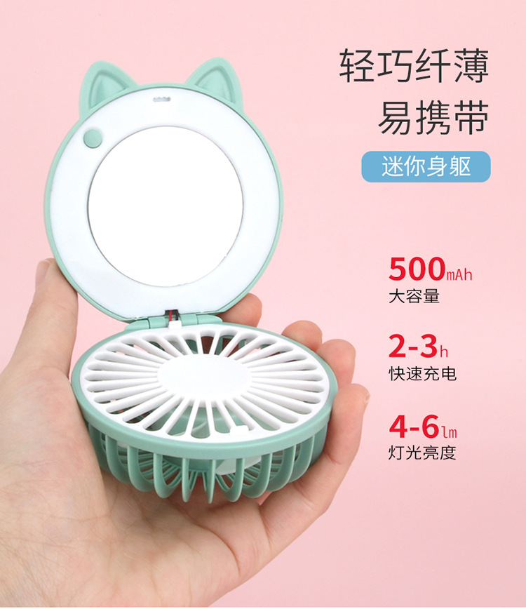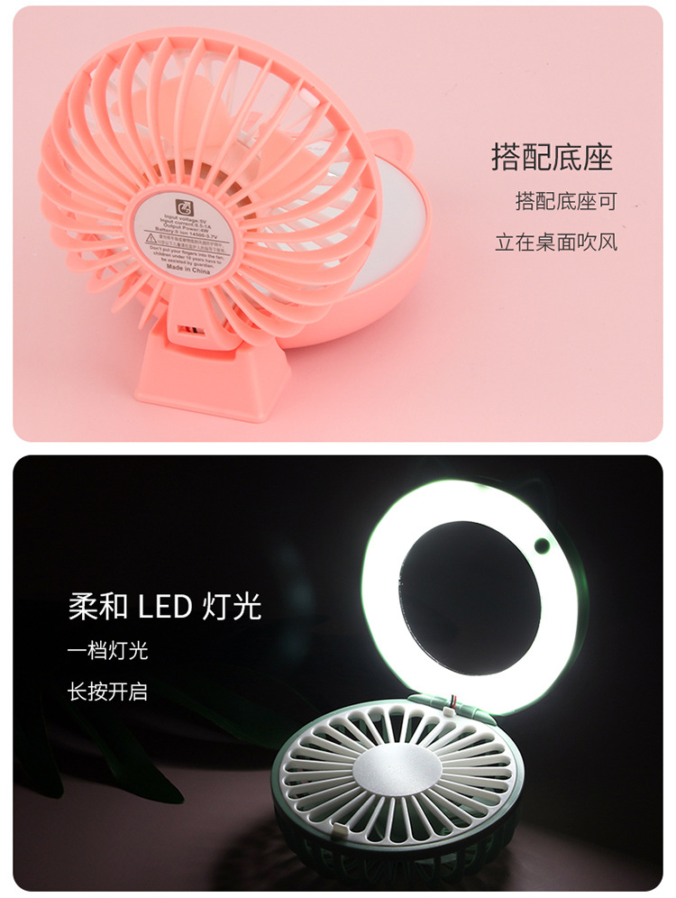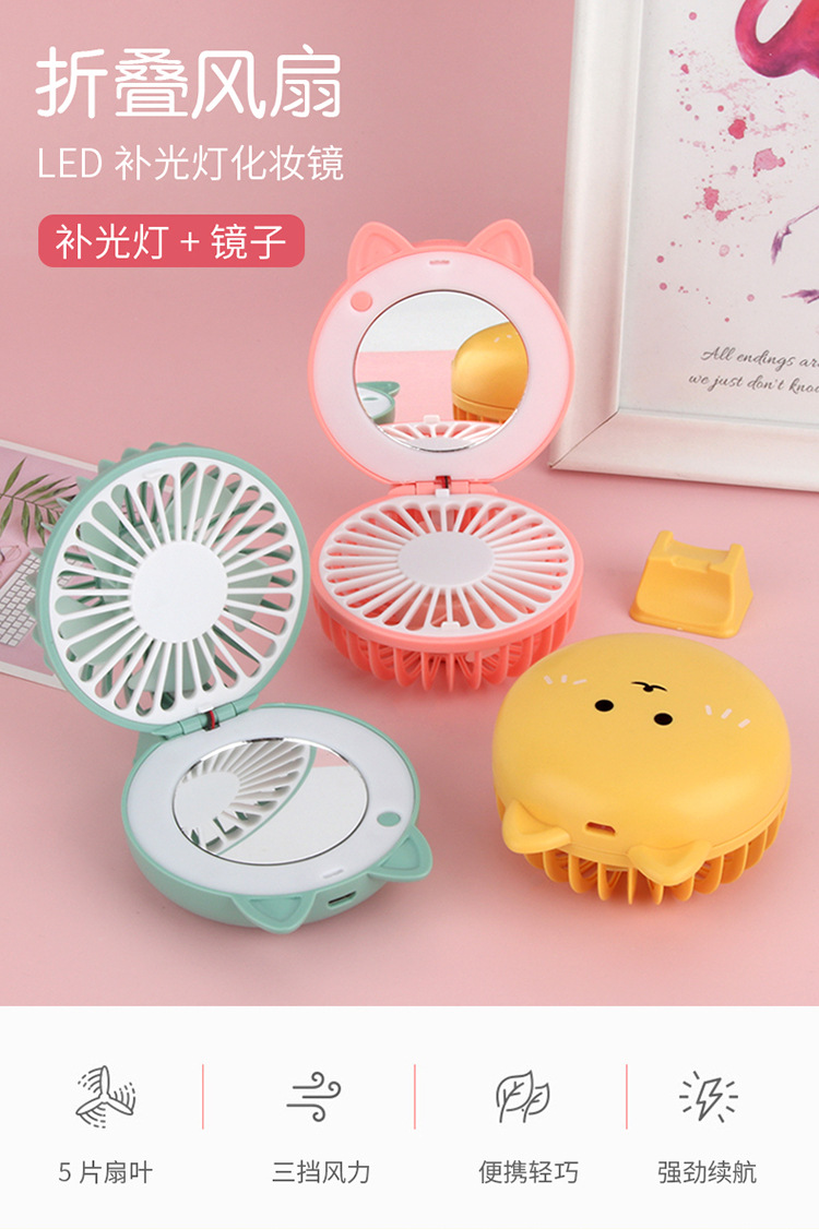 折叠卡通美妆镜补光灯充电风扇 usb口袋锂电小风扇