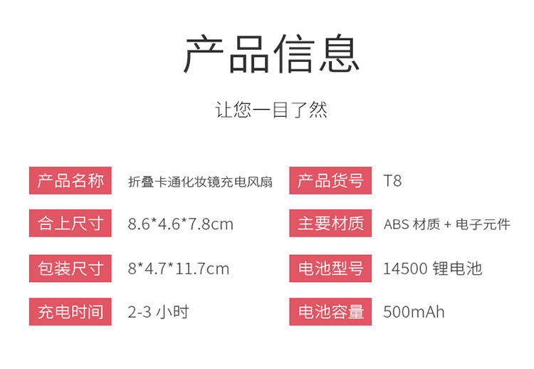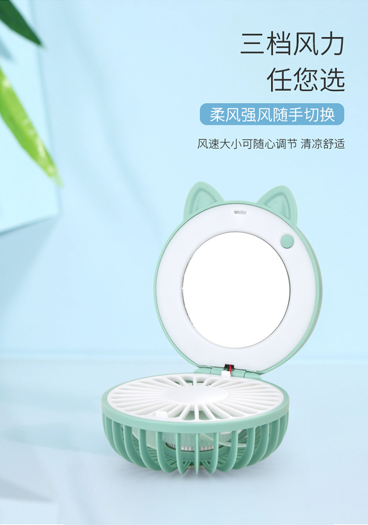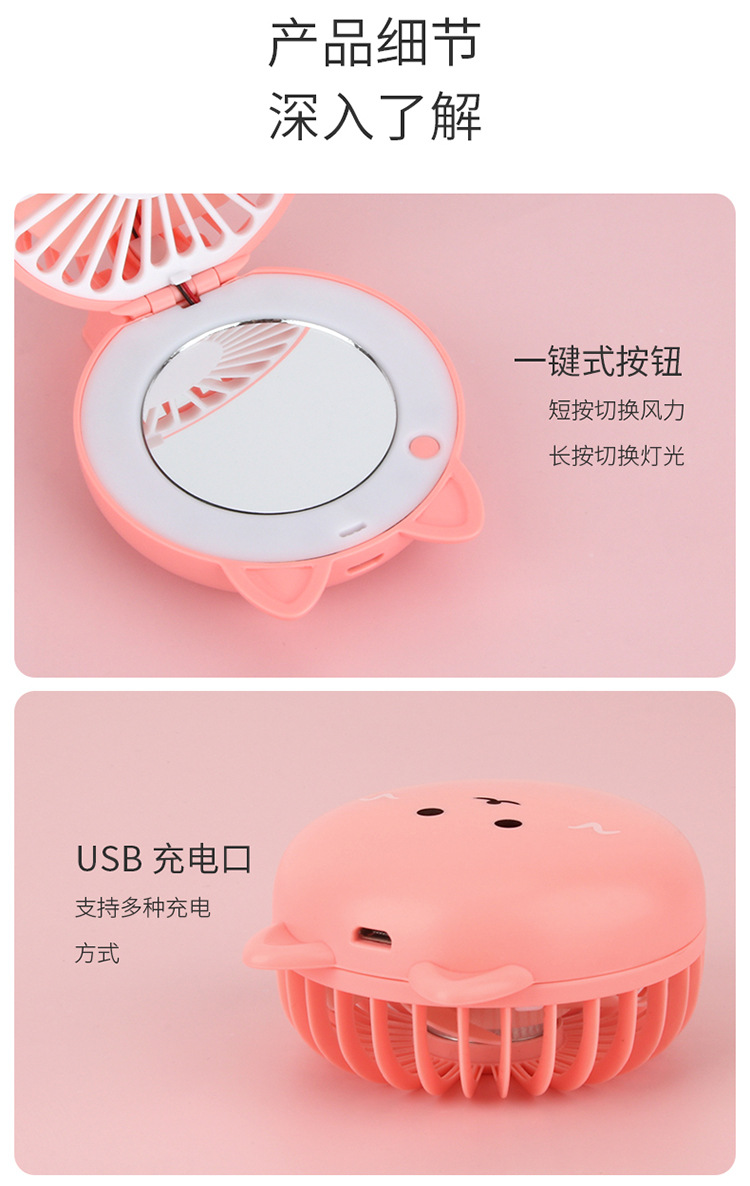 产品品名:折叠卡通美妆镜补光灯充电风扇