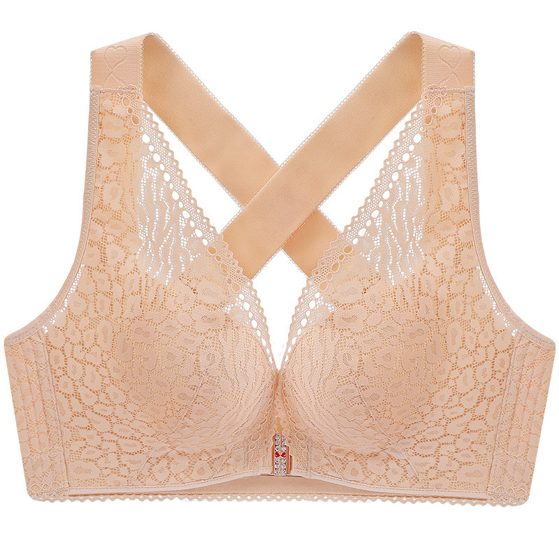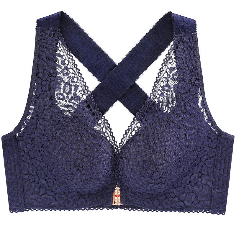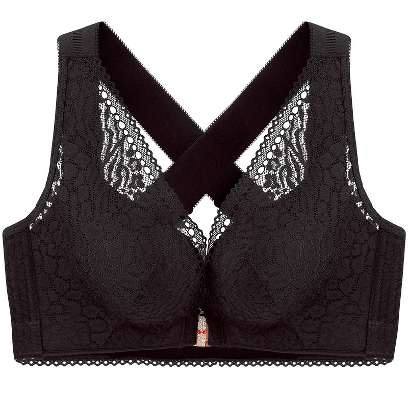 新品前扣无钢圈大码文胸蕾丝交叉美背内衣女聚拢调整型薄款胸罩