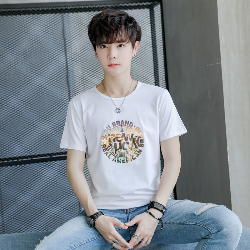 夏季男装短袖男t恤潮流学生青年时尚修身半截袖衣服大码