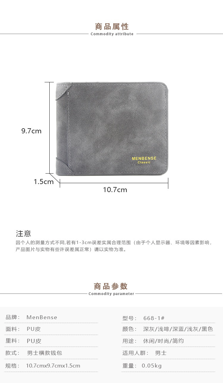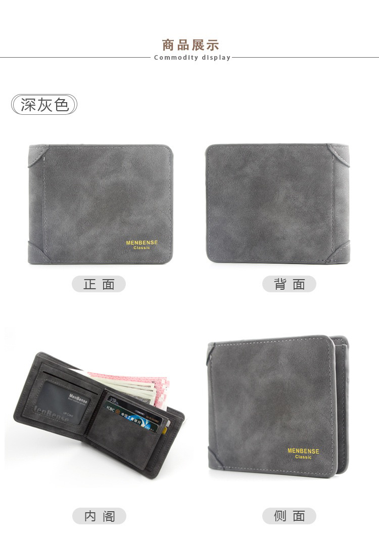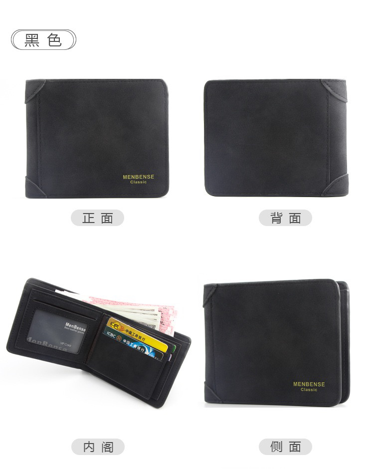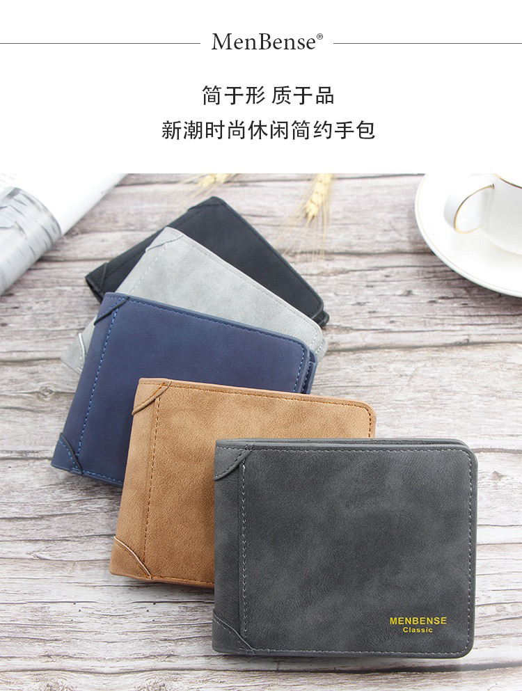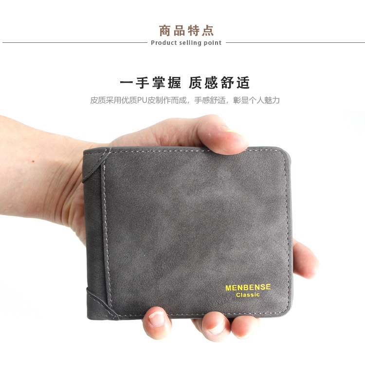 MenBense新款磨砂男士钱包短款大容量多功能休闲皮夹厂家直供货源