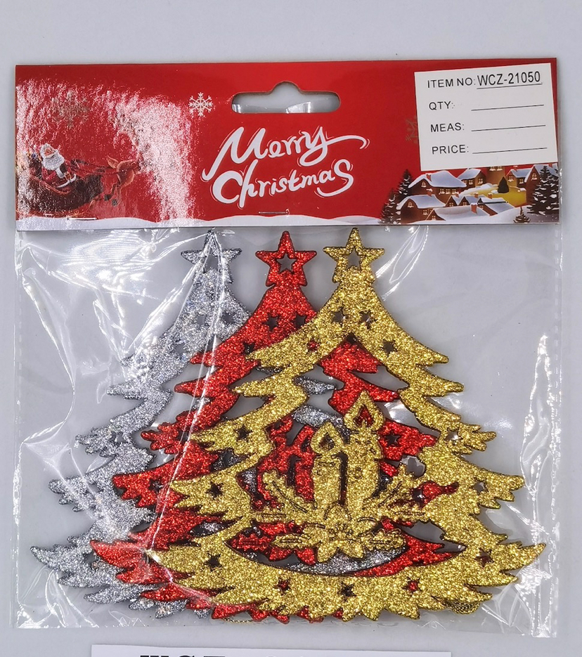 厂家直销圣诞挂件圣诞摆件金粉挂件马雪花