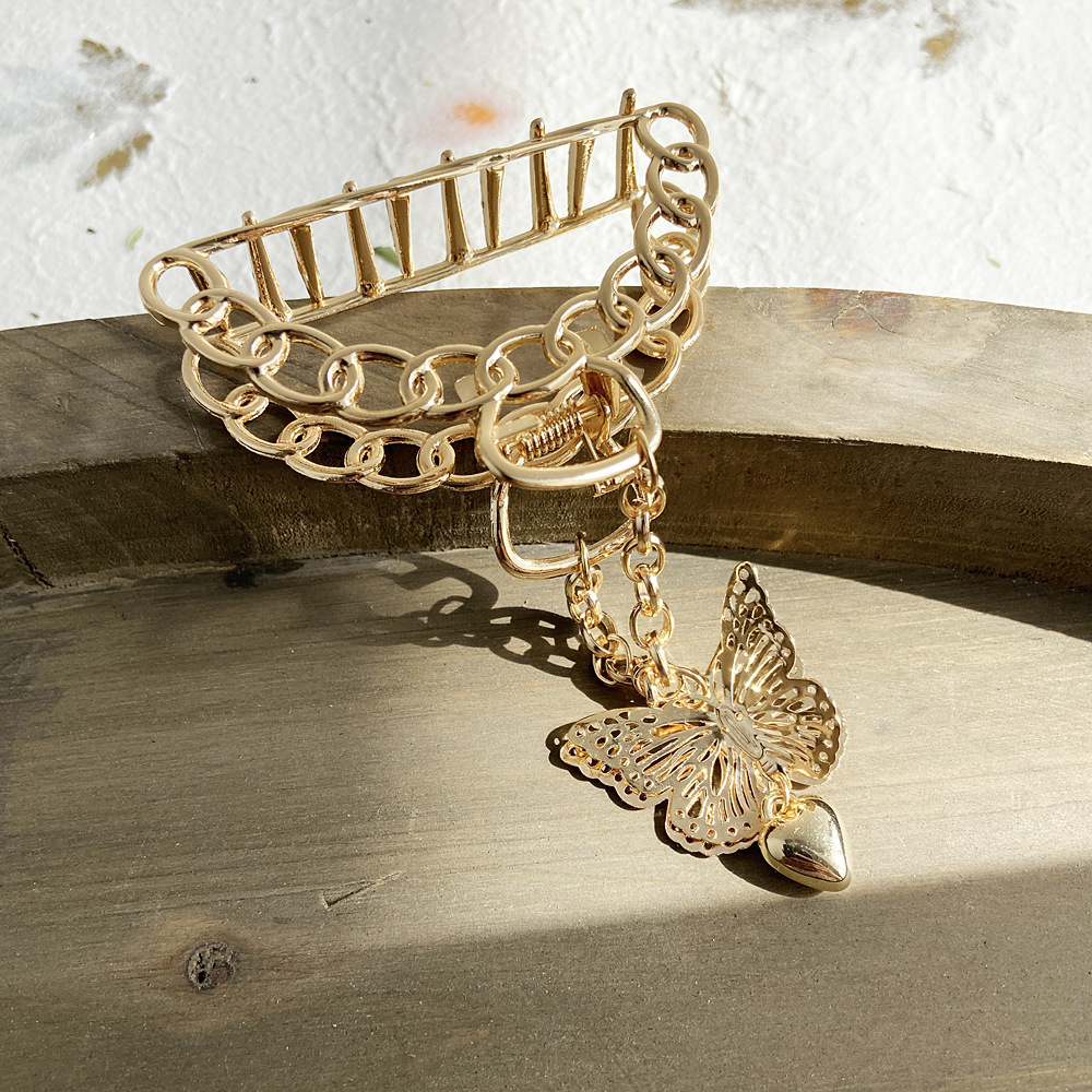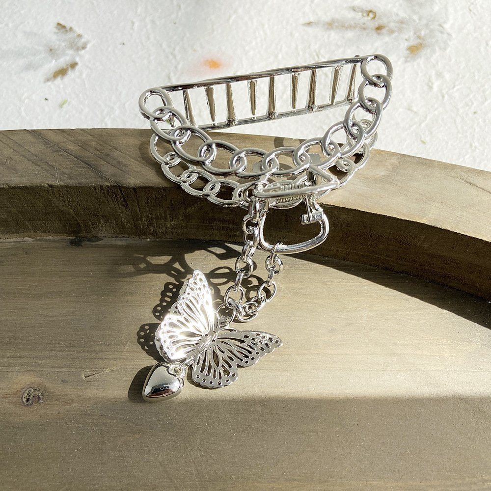 ins同款个性小众蝴蝶爱心吊坠发夹抓发夹立体蝴蝶链条抓夹头饰女