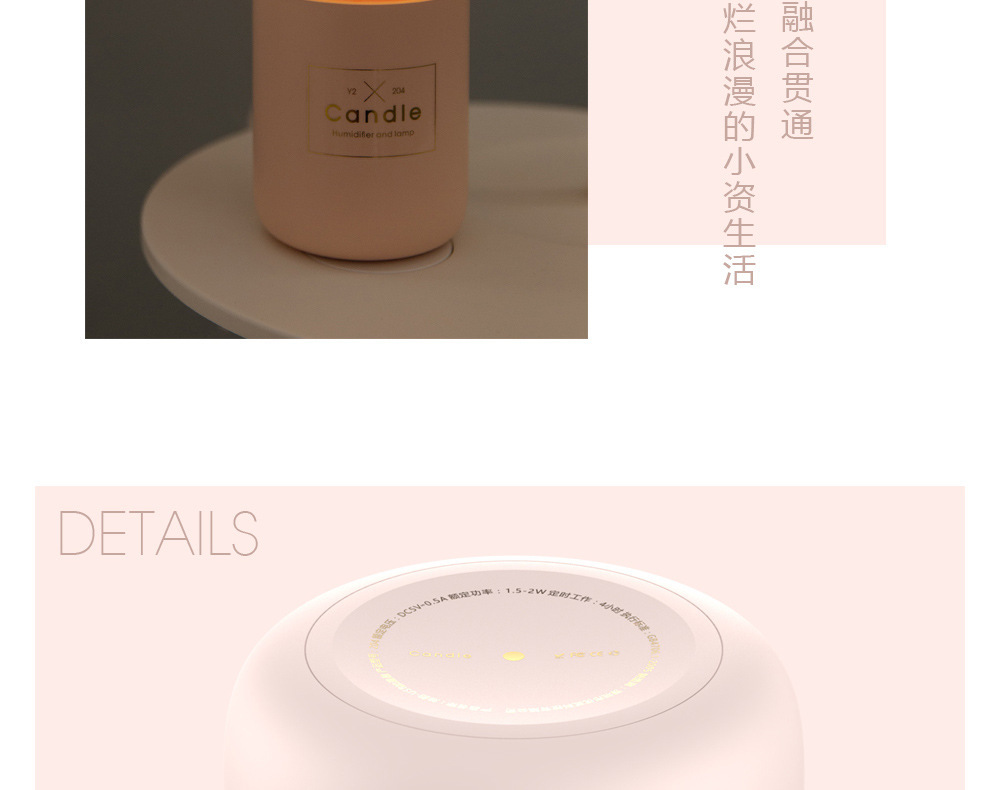 外贸专供204烛韵加湿器USB柔光LED小夜灯加湿器办公室桌面加湿器