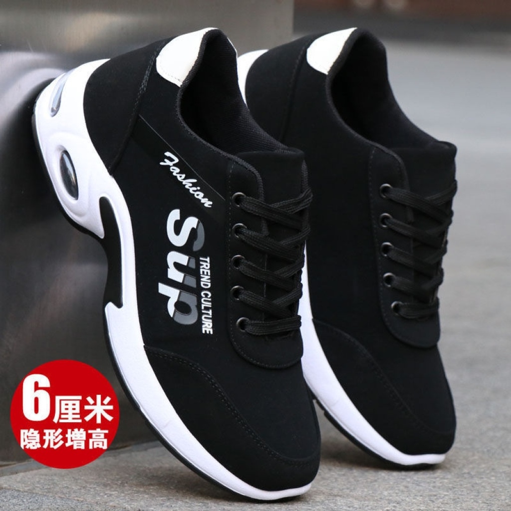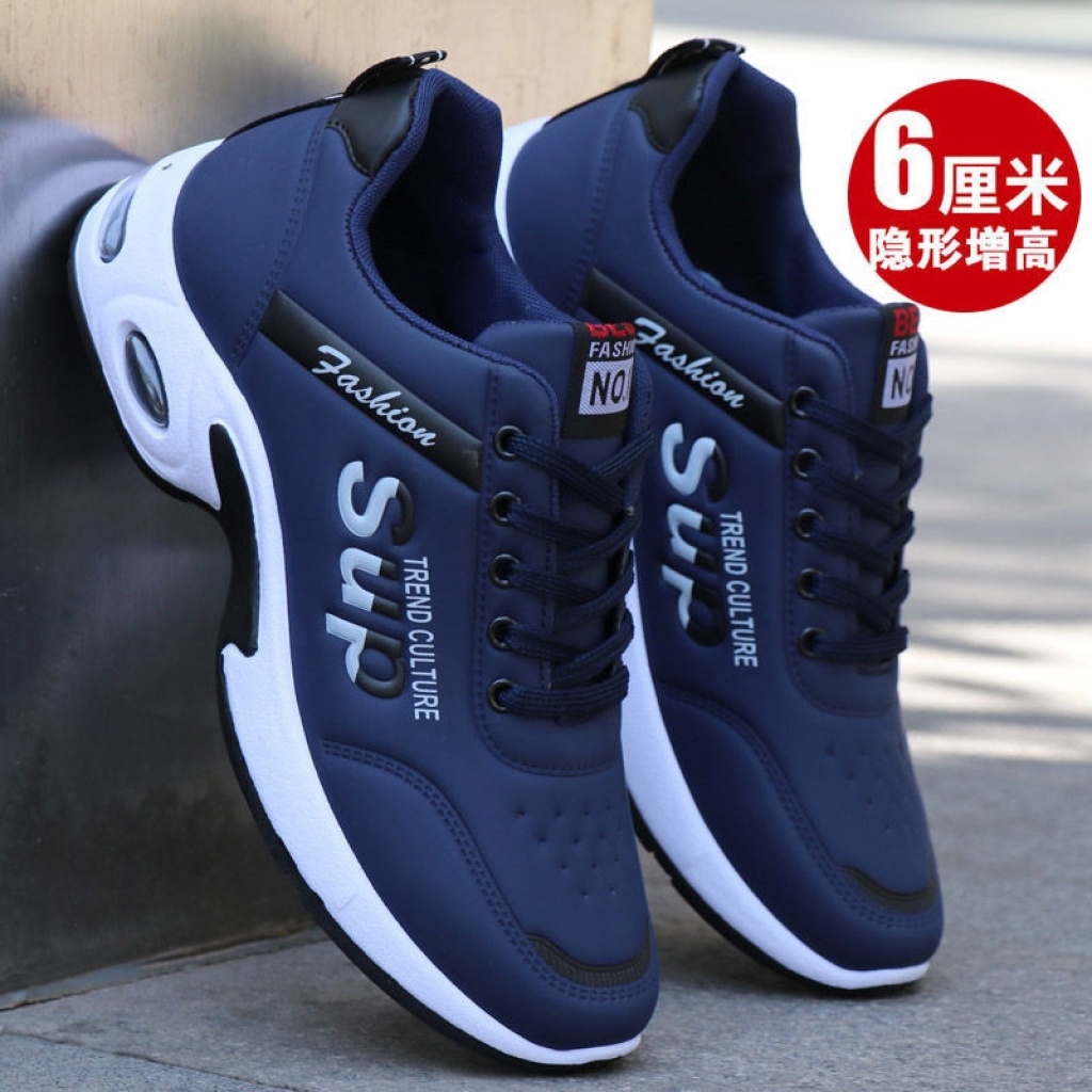 运动鞋男内6CM春季潮鞋男士防滑防臭学生鞋白色皮面防水男鞋