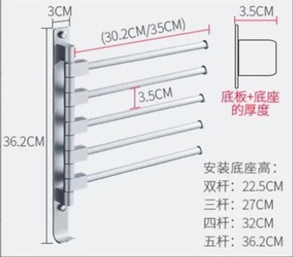 旋转毛巾架卫生间浴室置物架折叠活动黑色太空铝厕所活动杆免打孔