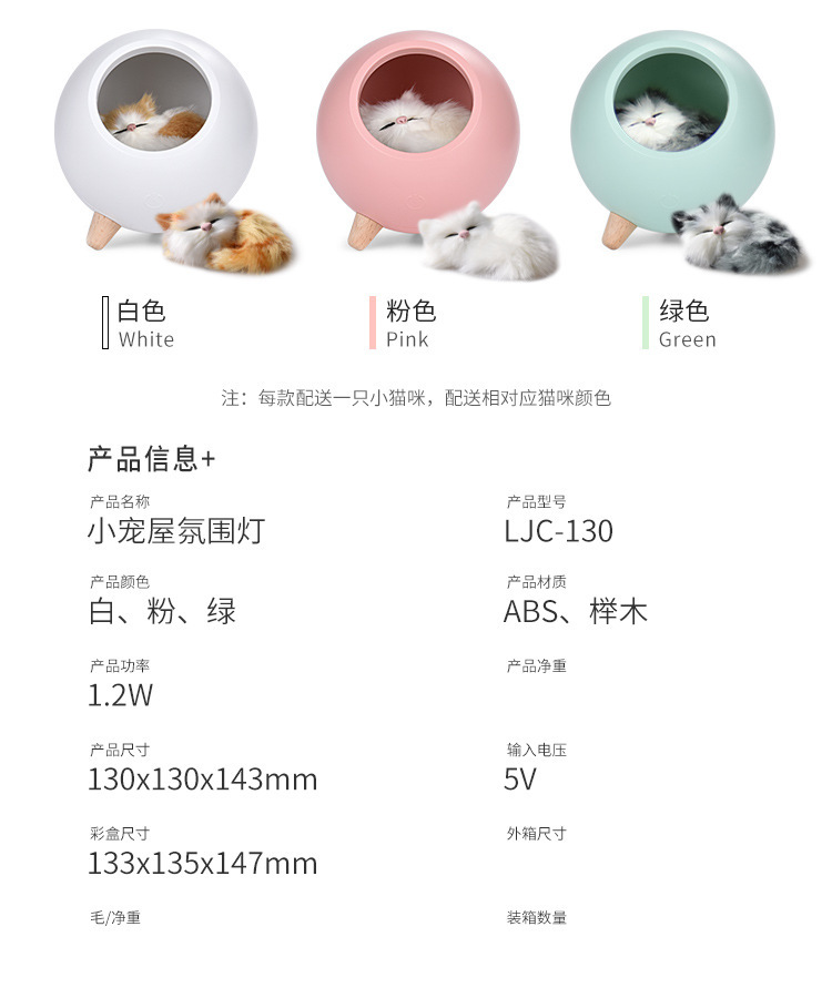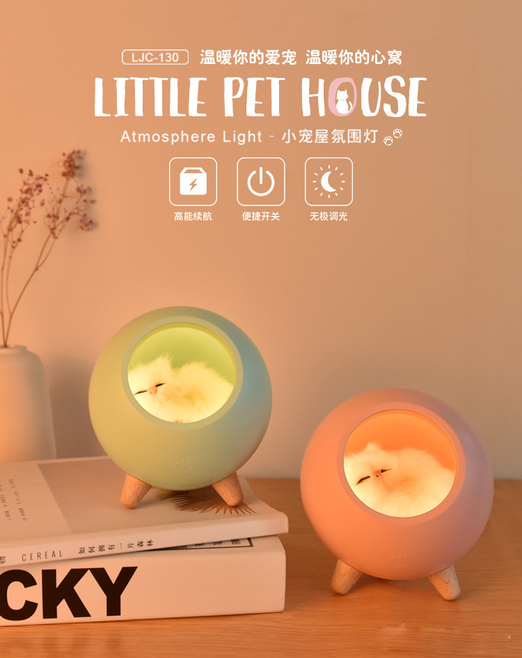 外贸专供创意小萌猫宠屋小夜灯可爱猫咪USB充电床头伴睡触摸LED灯