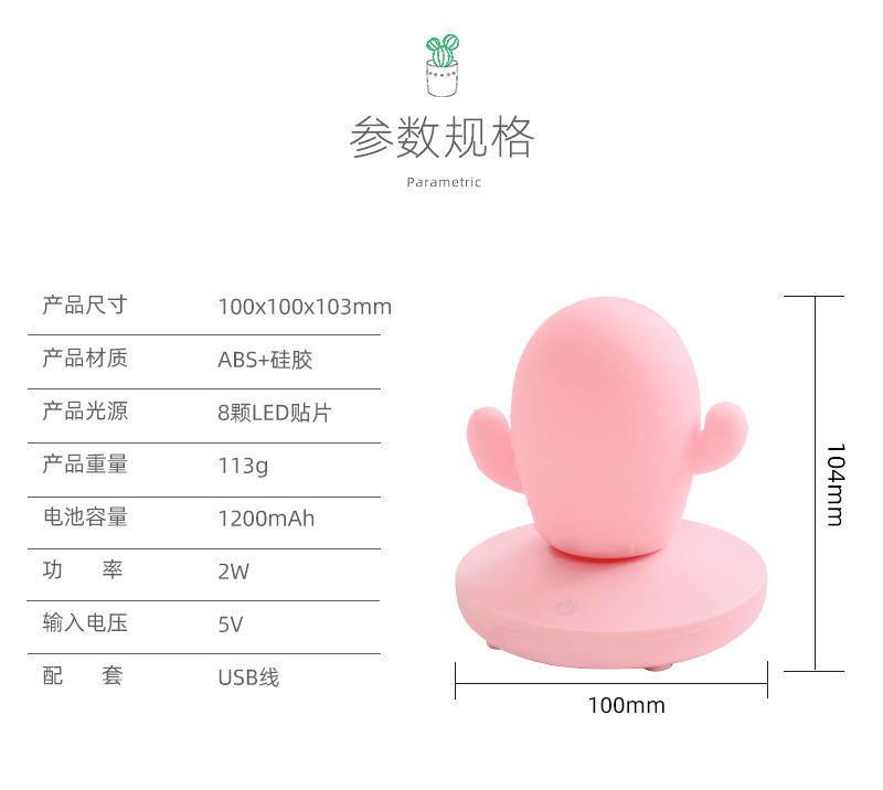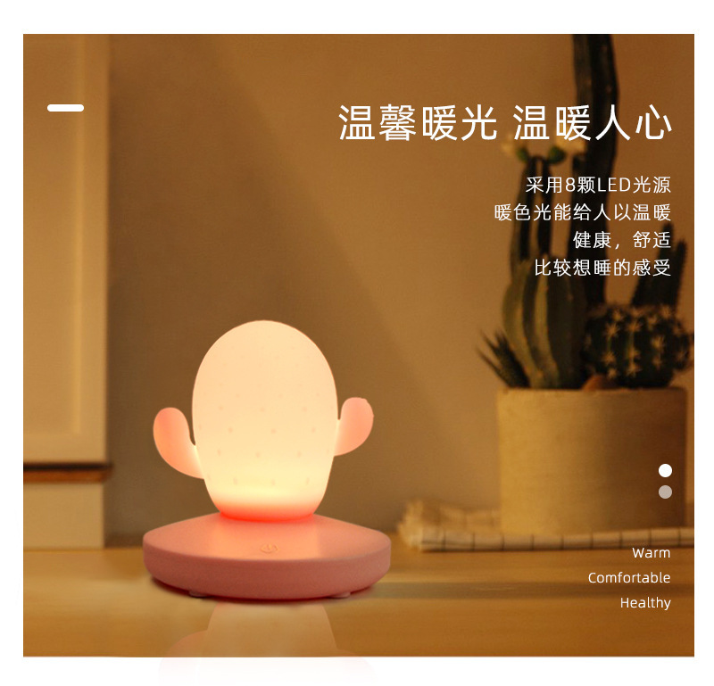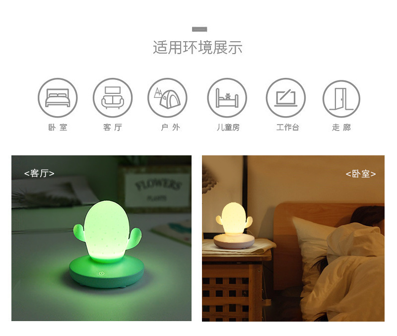 外贸专供卡通TL01仙人掌硅胶小夜灯触控灯儿童床头护眼LED小夜灯