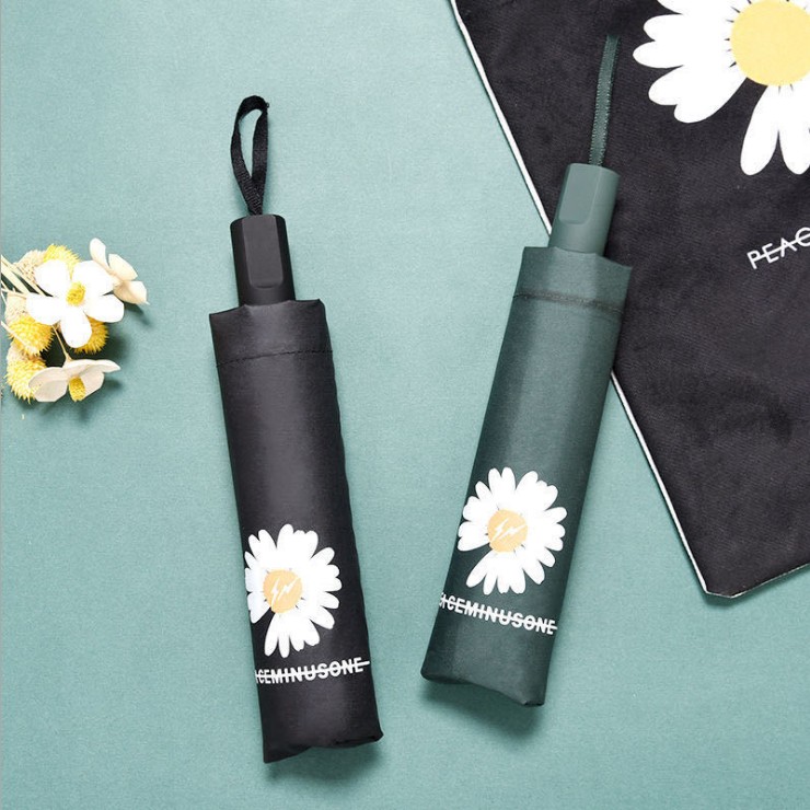 【自动小雏菊印字】黑胶伞全自动晴雨伞防紫外线雨伞折叠太阳伞