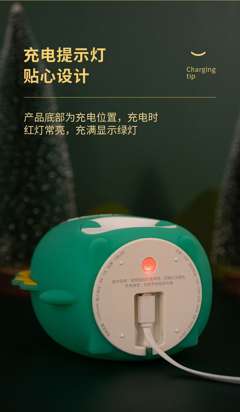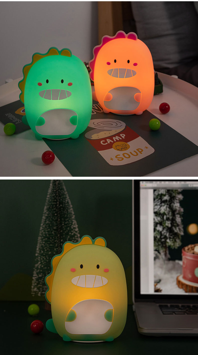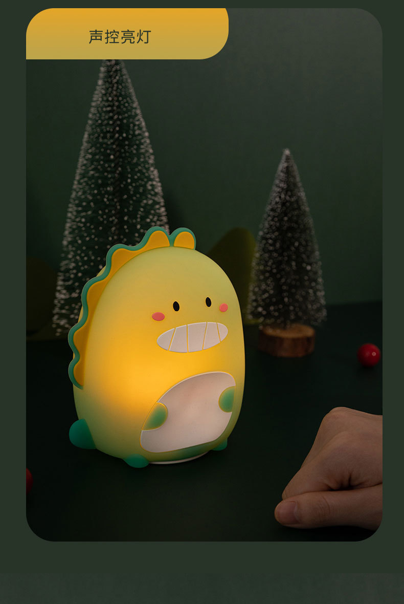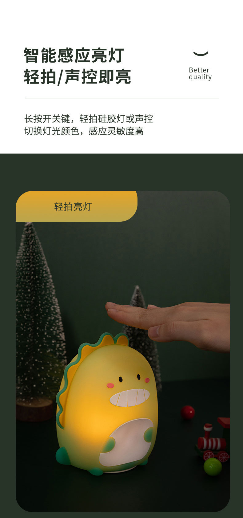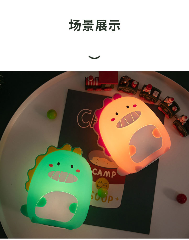 外贸专供新品PPD4恐龙硅胶小夜灯可爱卡通拍拍彩色硅胶恐龙起夜灯