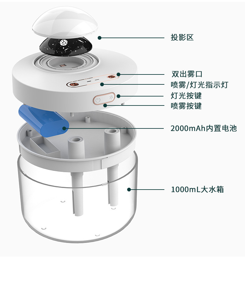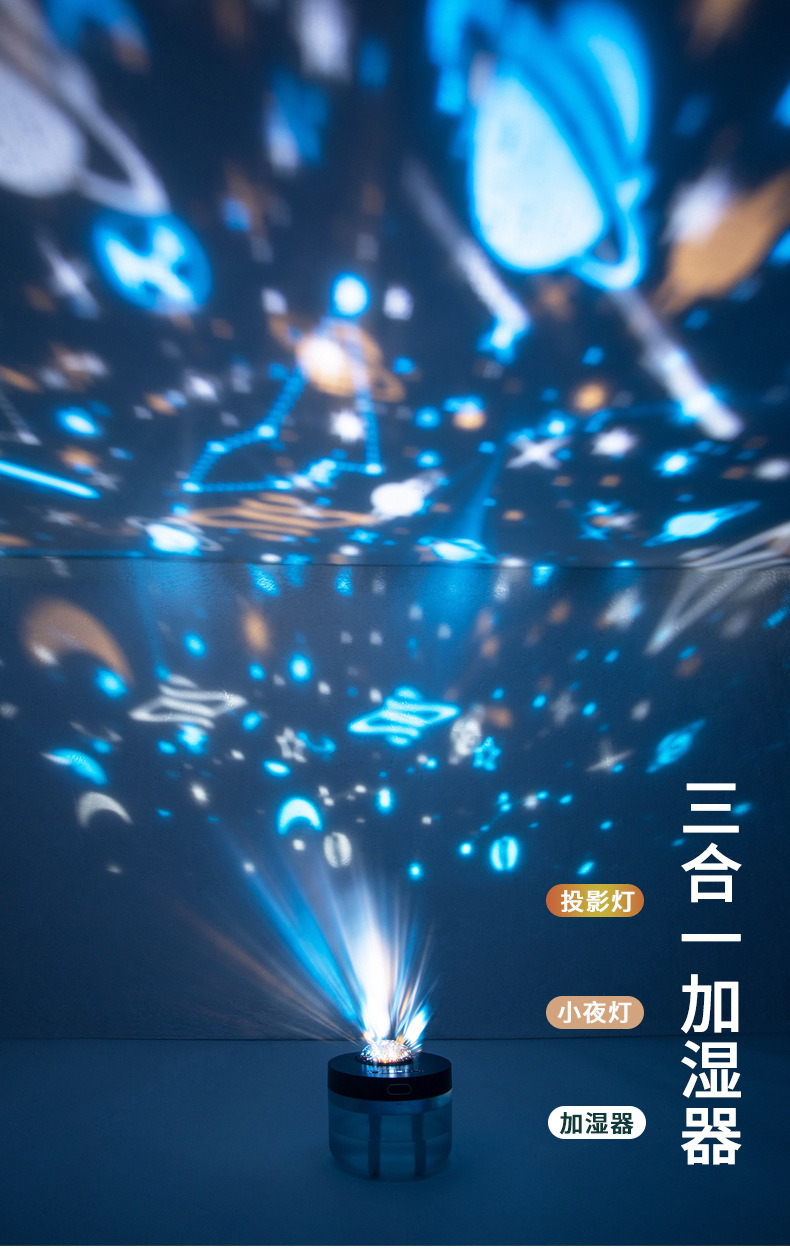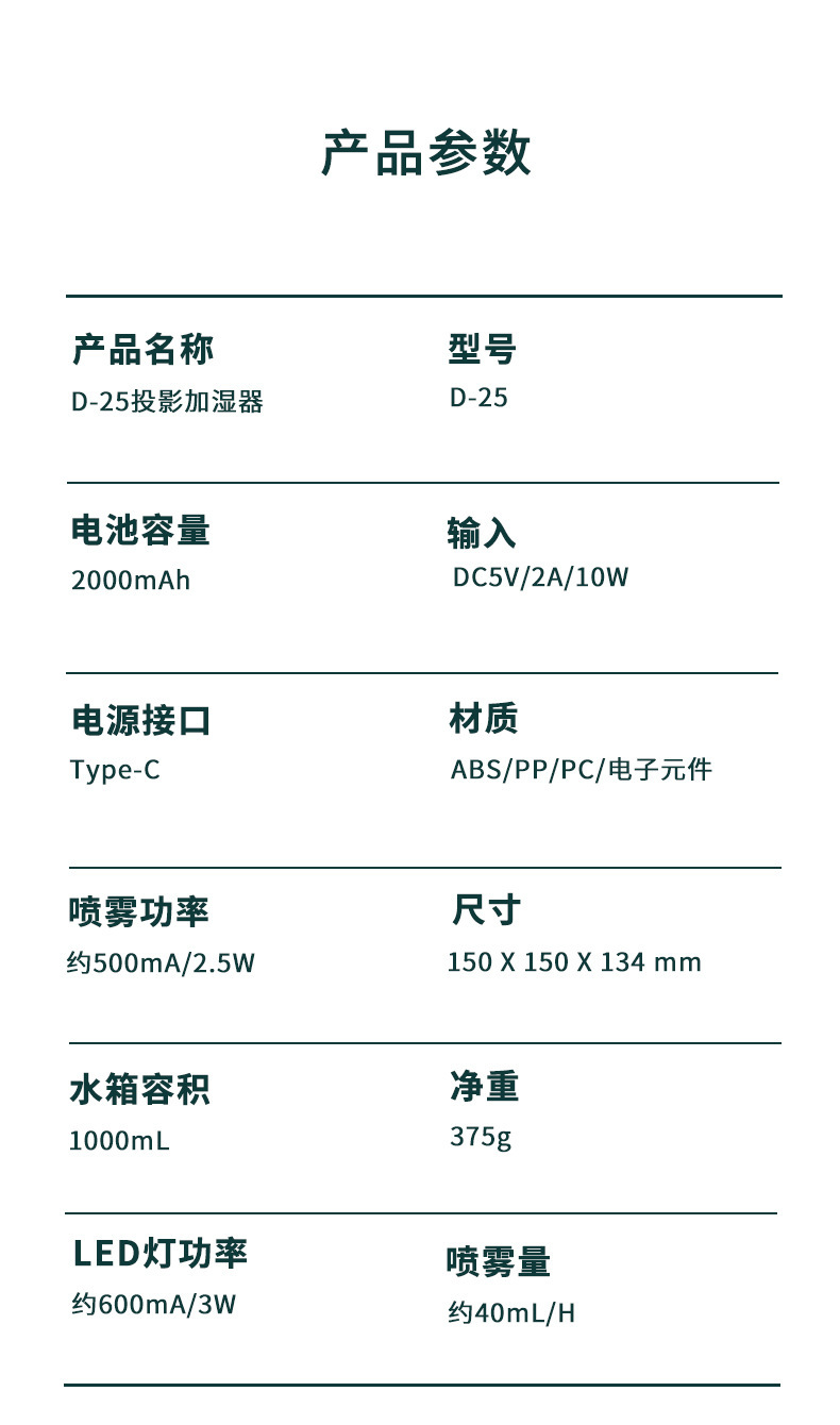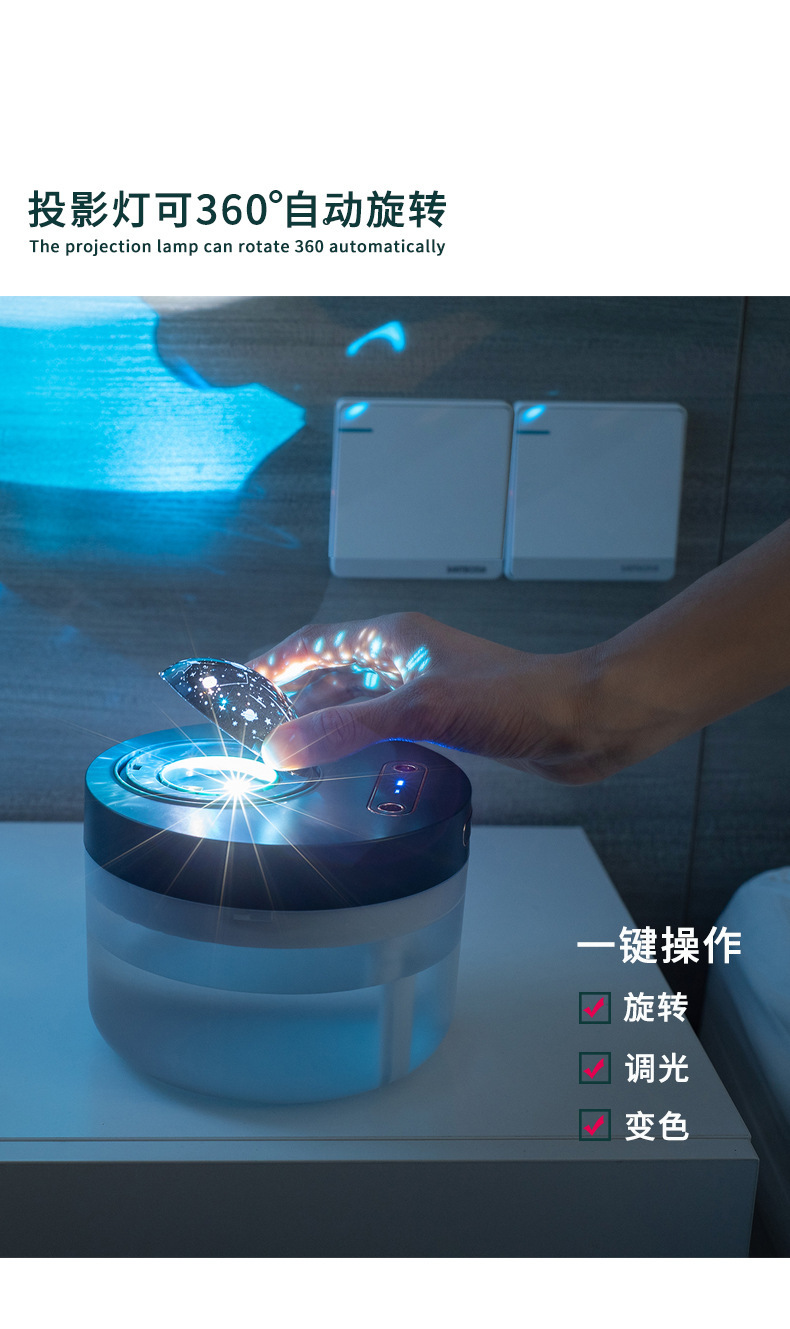 外贸专供D25双喷投影加湿器usb家用迷你小型灯投影双喷加湿器