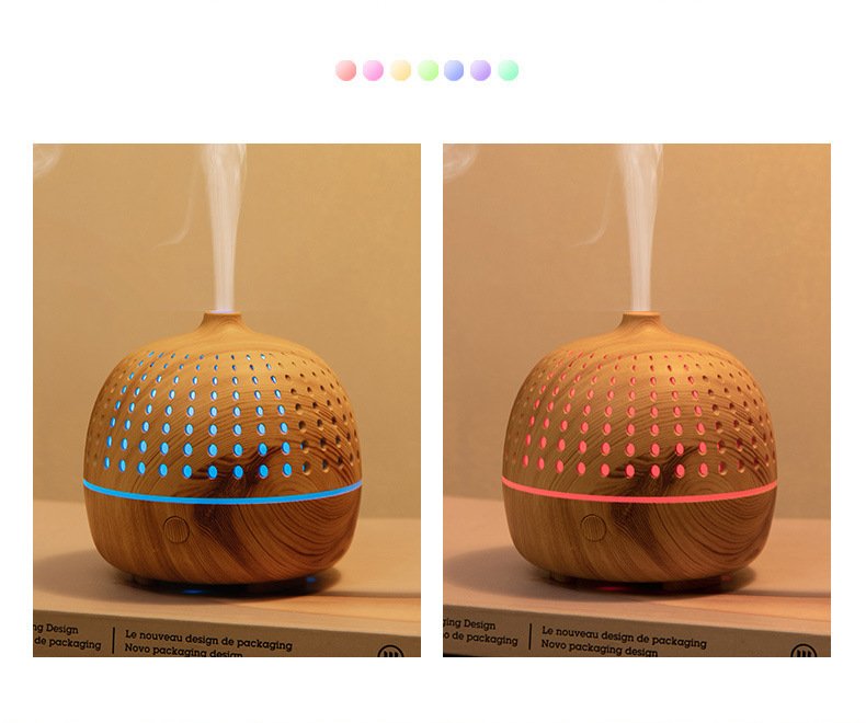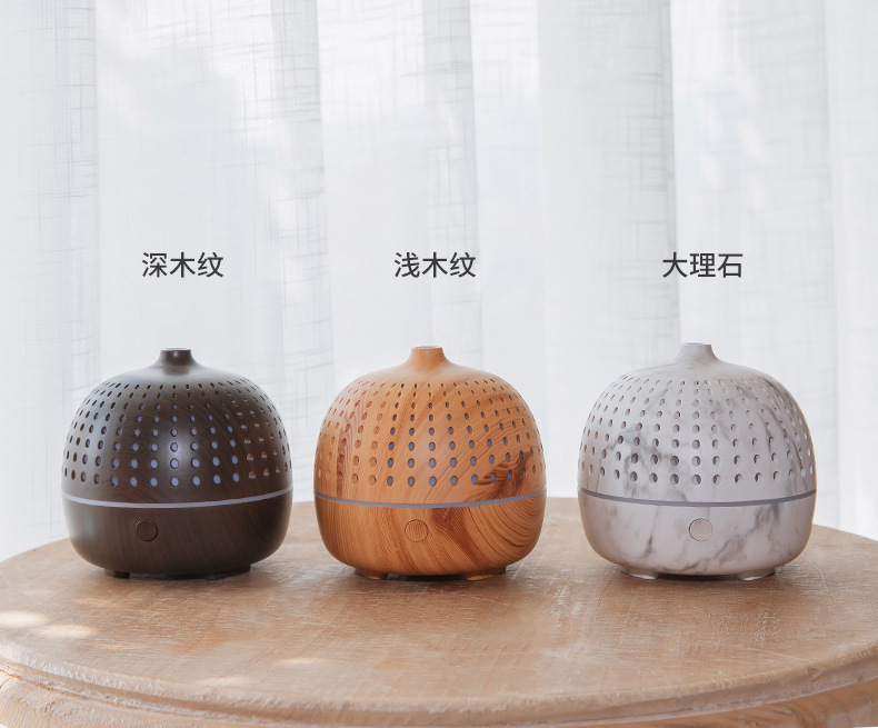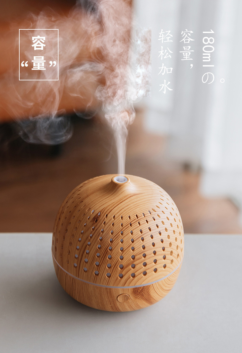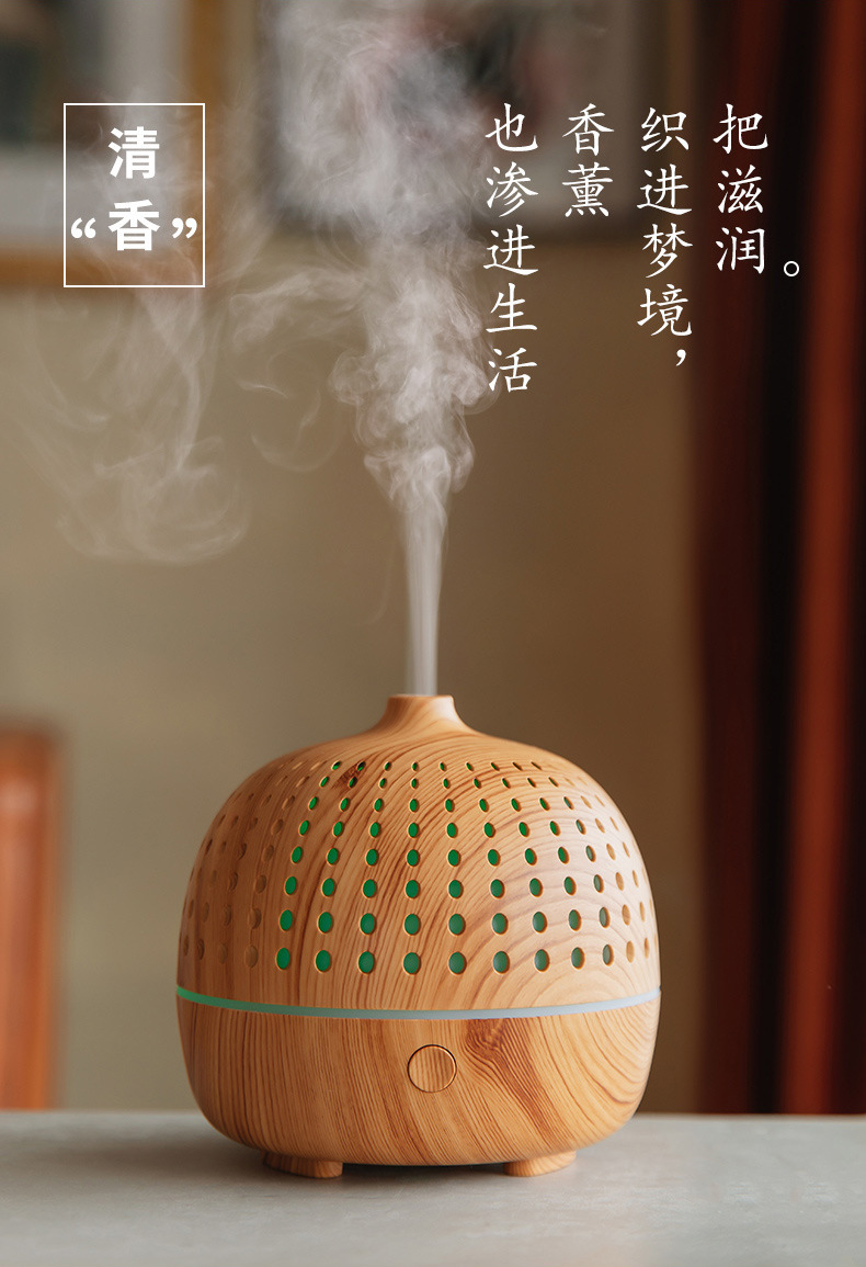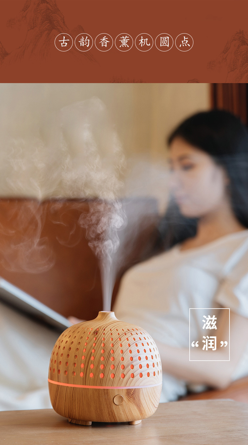 外贸专供LLD古韵圆点香薰机七彩灯超声波木纹usb复古桌面香薰机