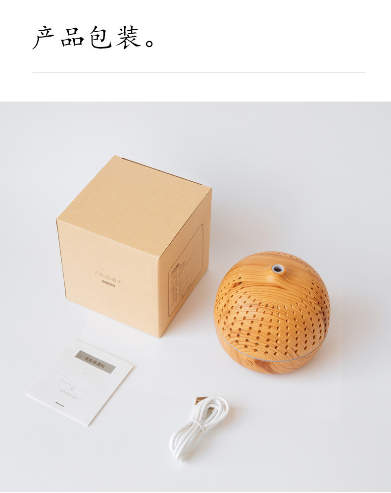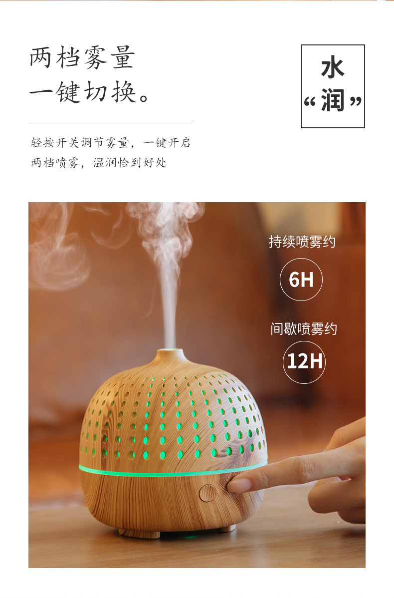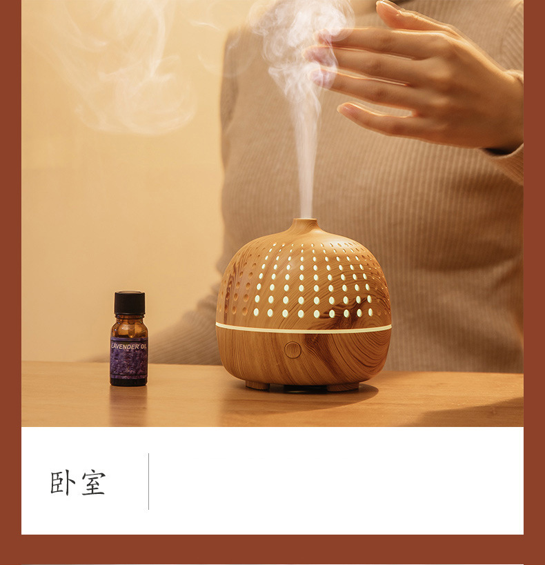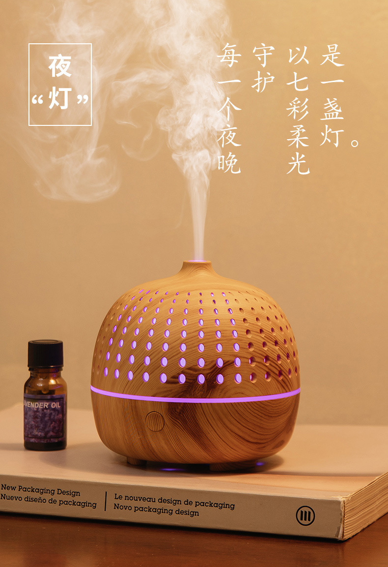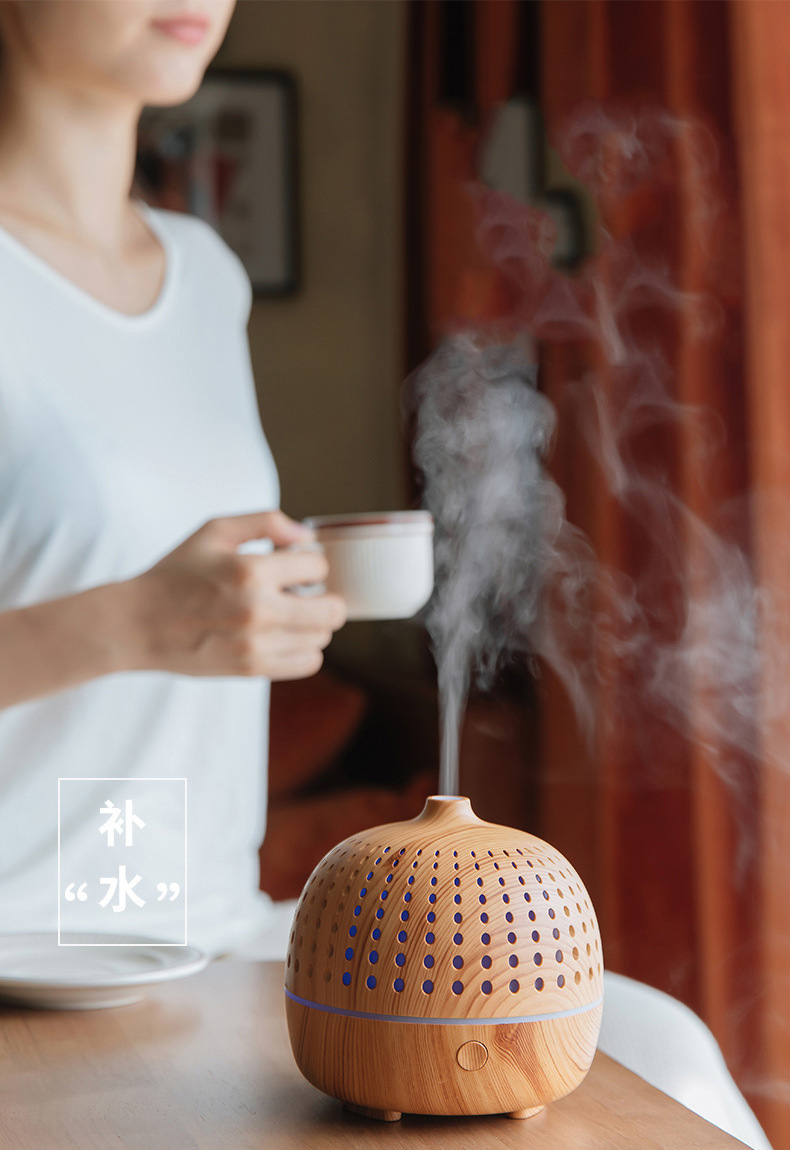 外贸专供LLD古韵圆点香薰机七彩灯超声波木纹usb复古桌面香薰机