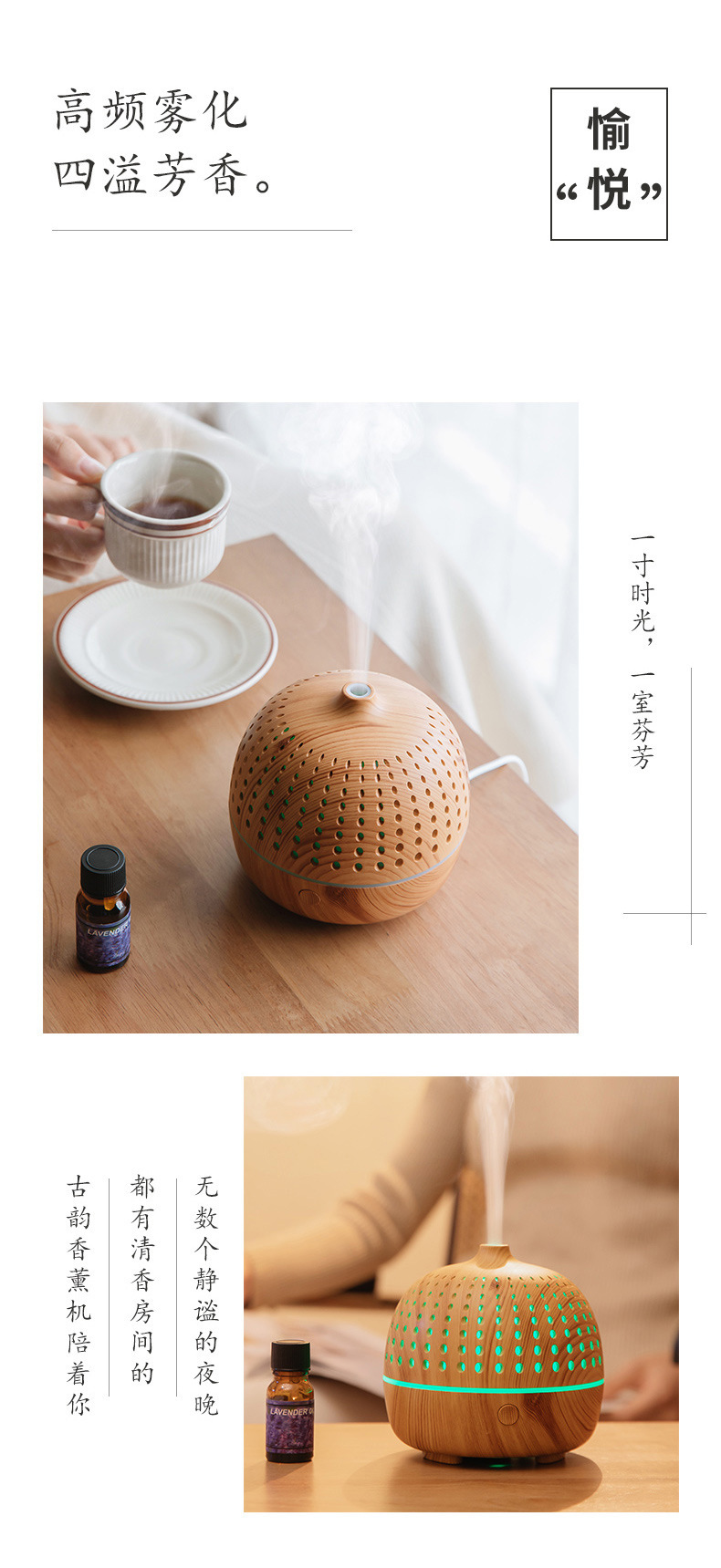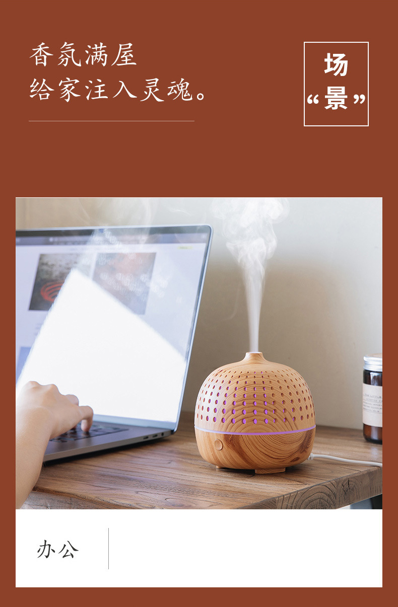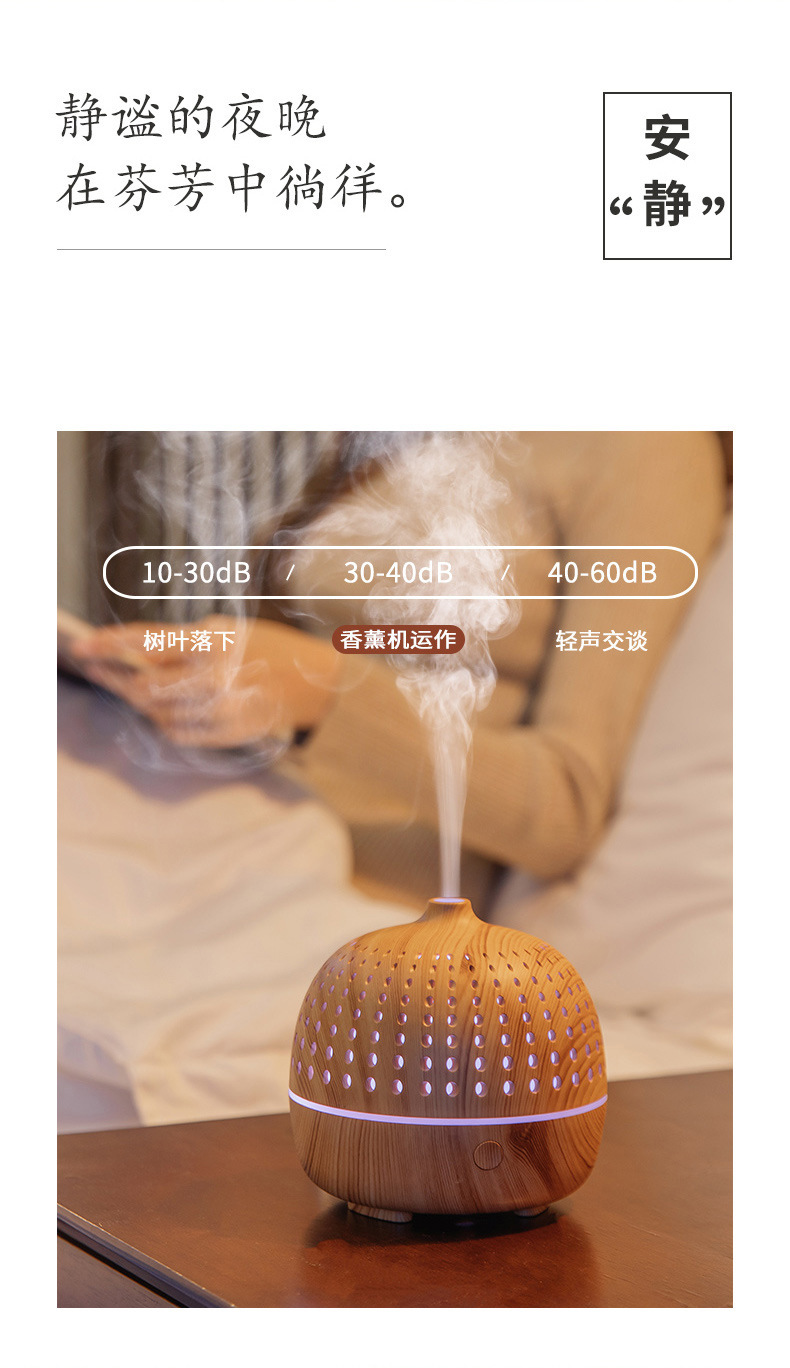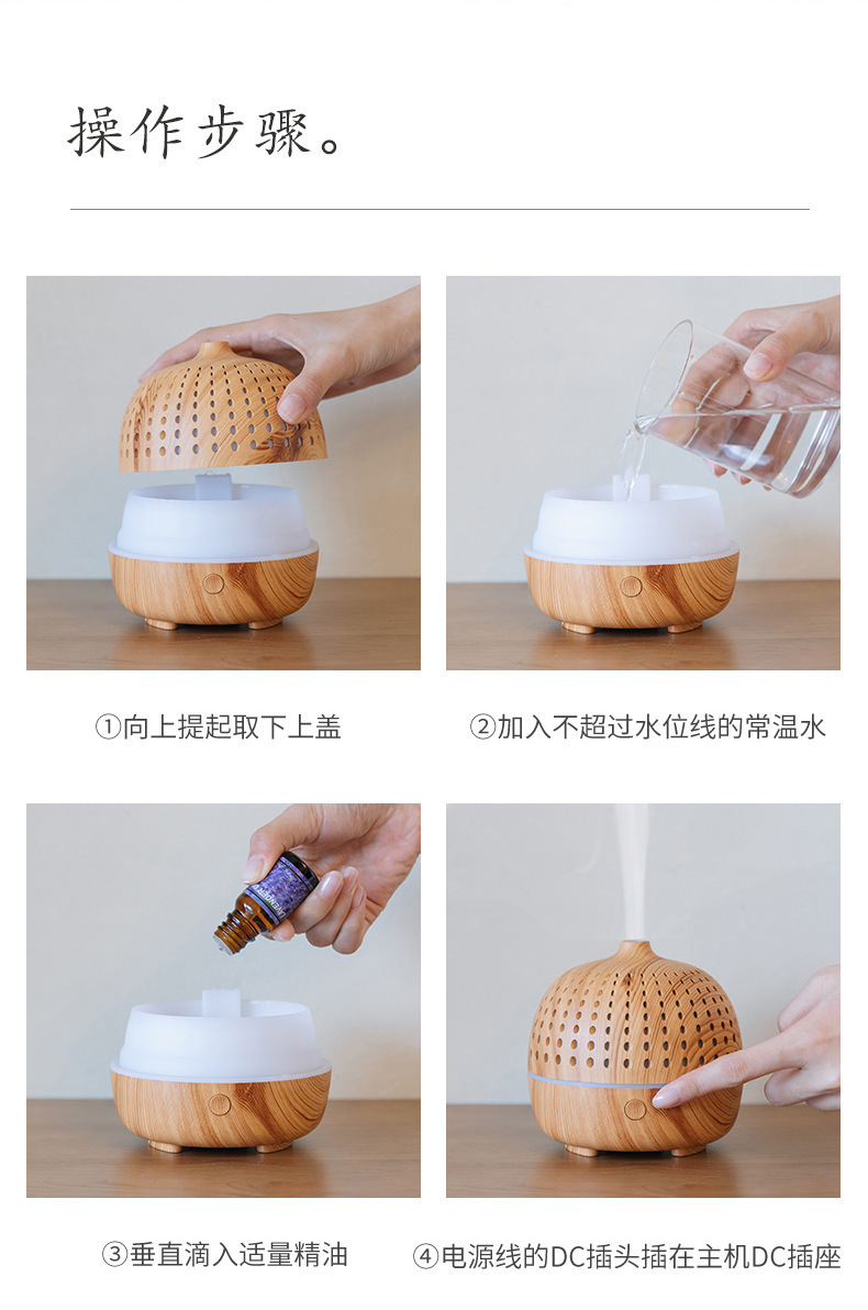 外贸专供LLD古韵圆点香薰机七彩灯超声波木纹usb复古桌面香薰机