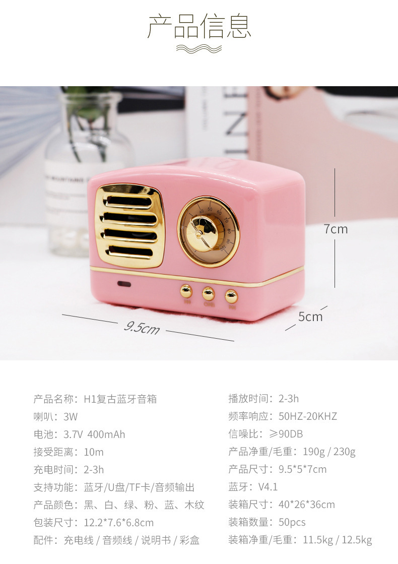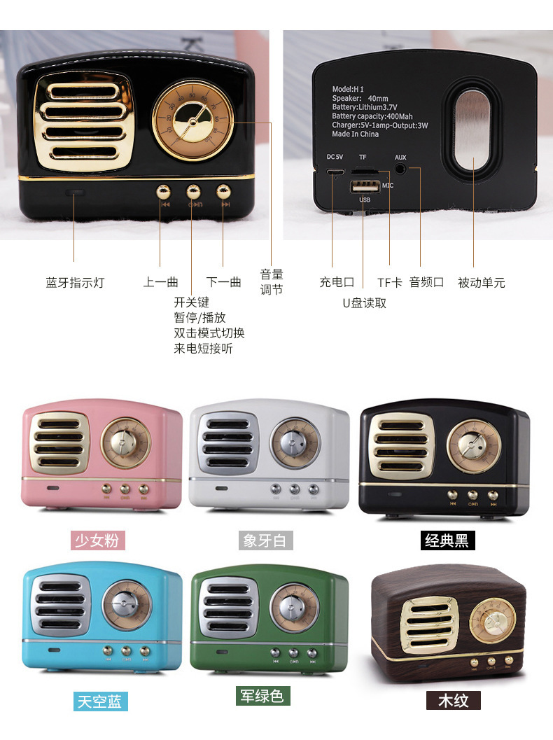 外贸专供新款复古HM11蓝牙音箱便携低音炮迷你收音户外机蓝牙音响