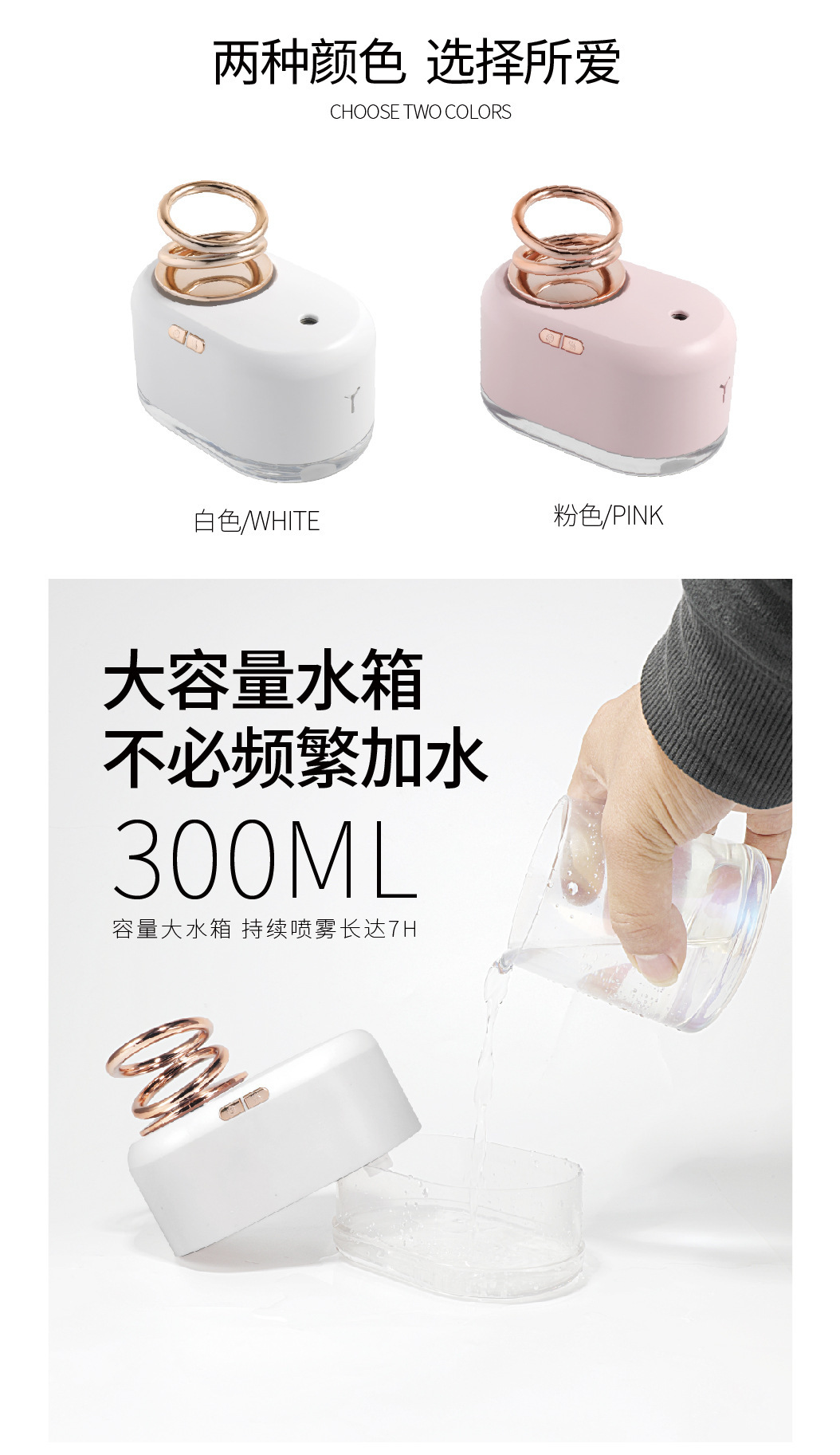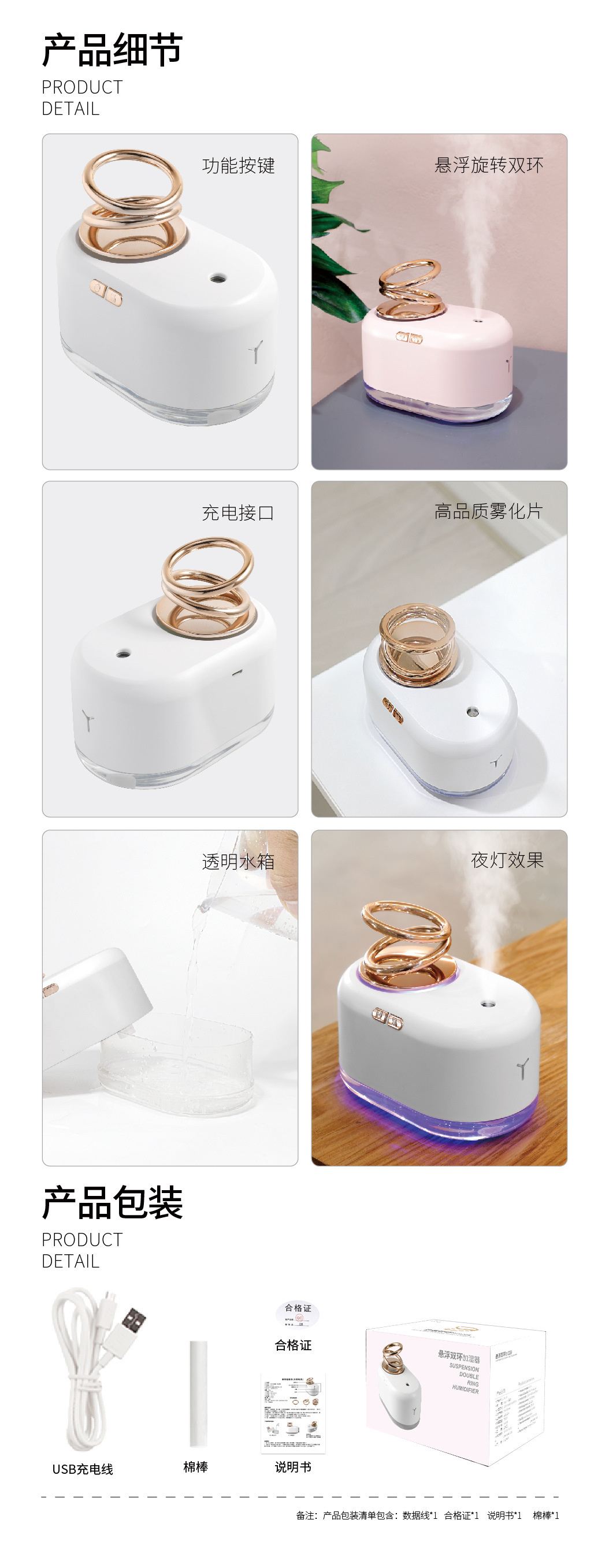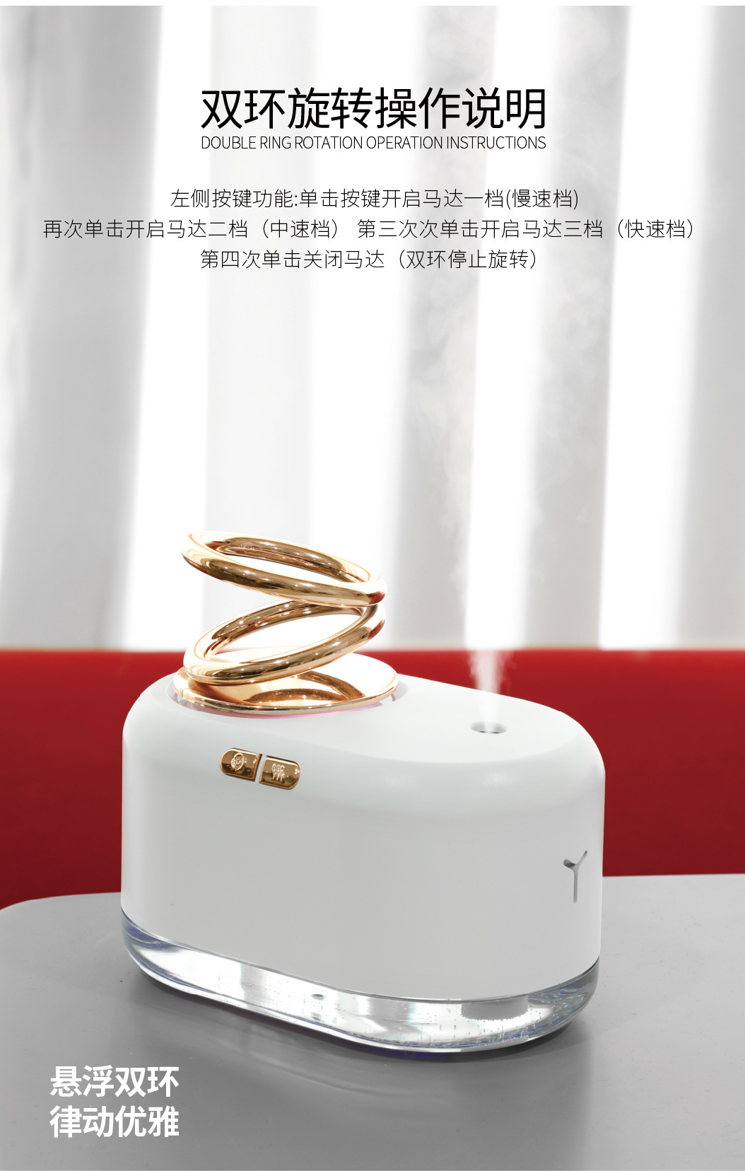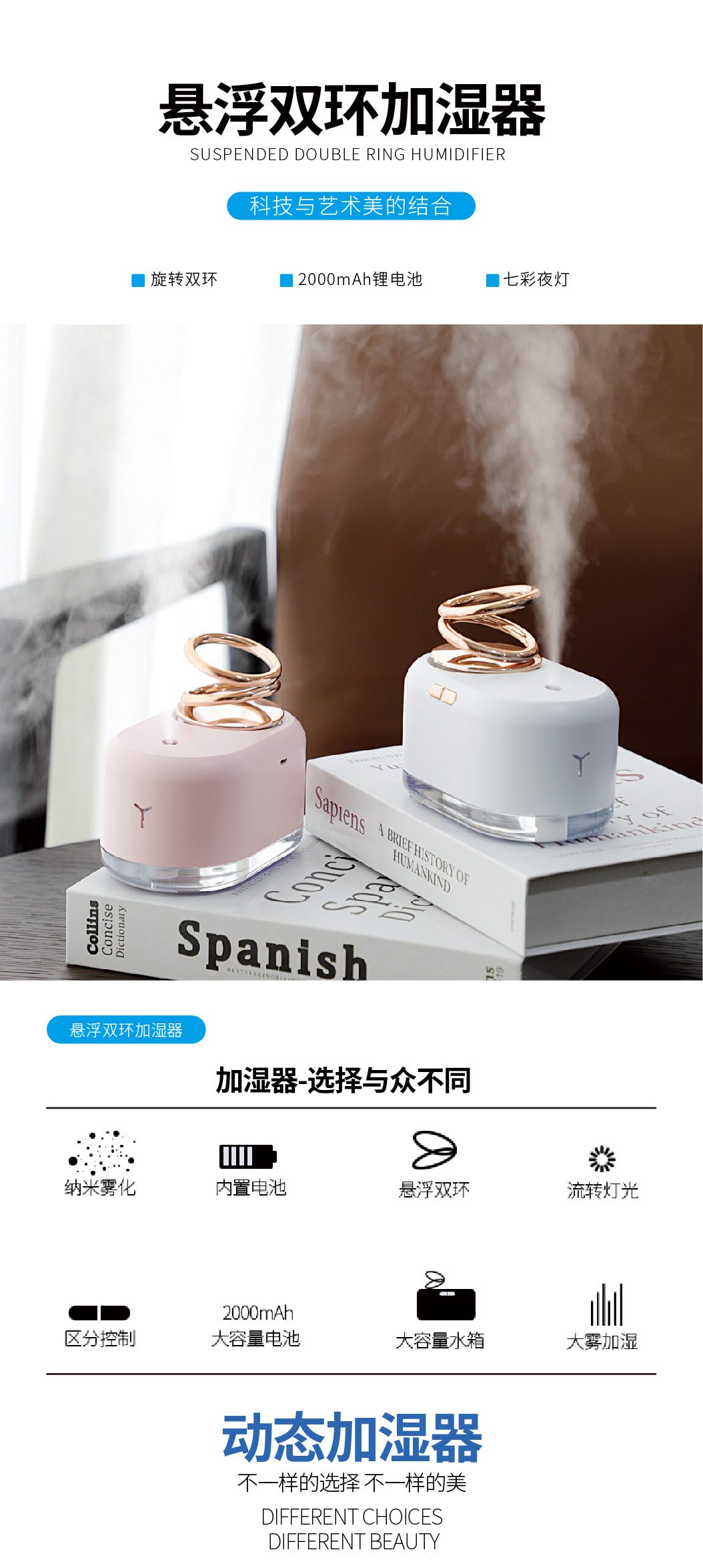 外贸专供AX18悬浮双环加湿器usb七彩大容量桌面车载家用加湿器