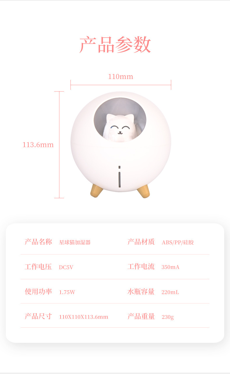 外贸专供新款TX5星球猫加湿器创意usb夜灯迷你家用桌面萌宠加湿器