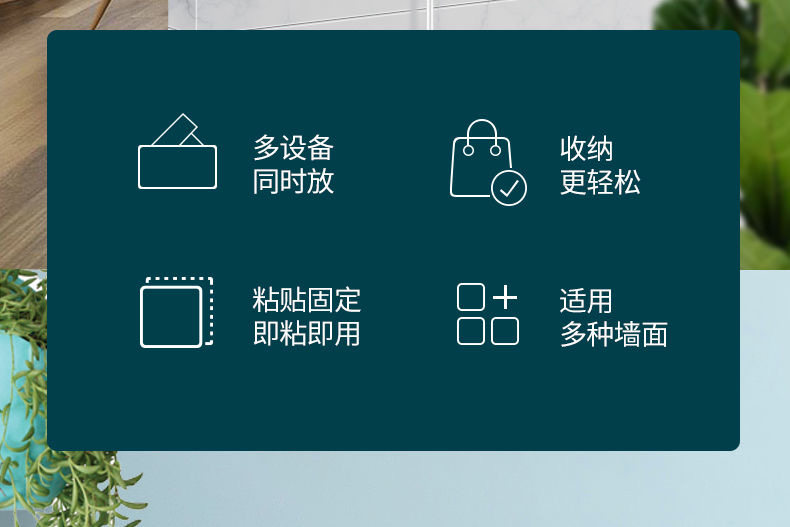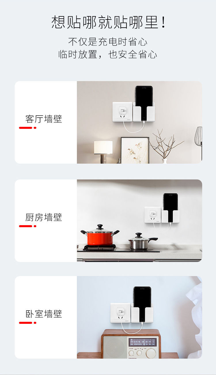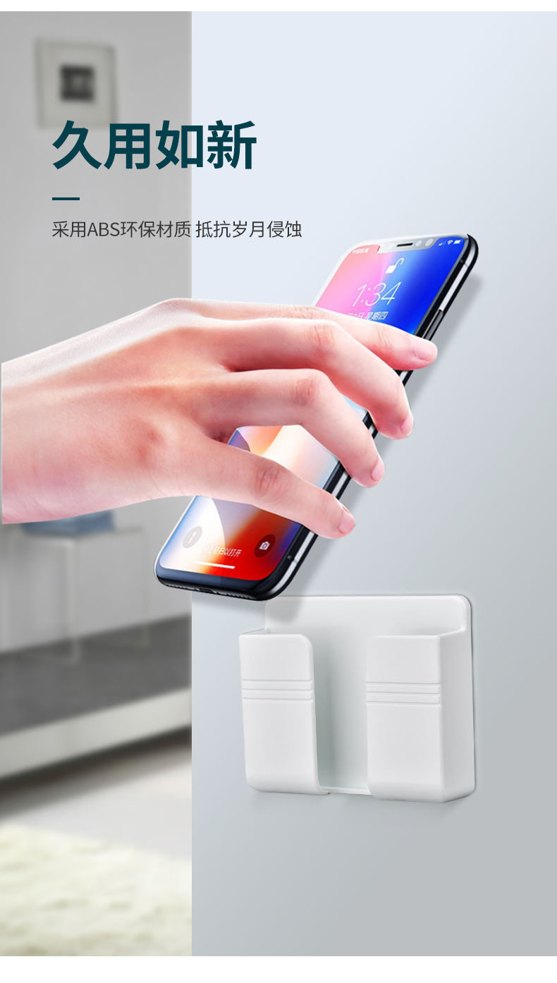 卧室墙壁免打孔粘贴式手机充电收纳架壁挂式遥控器收纳盒