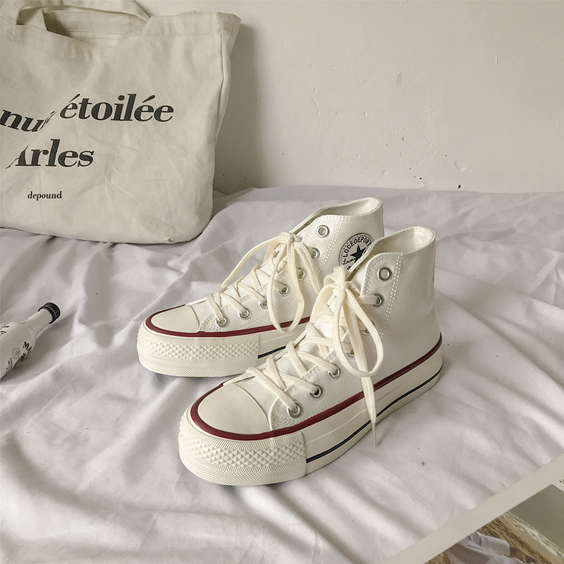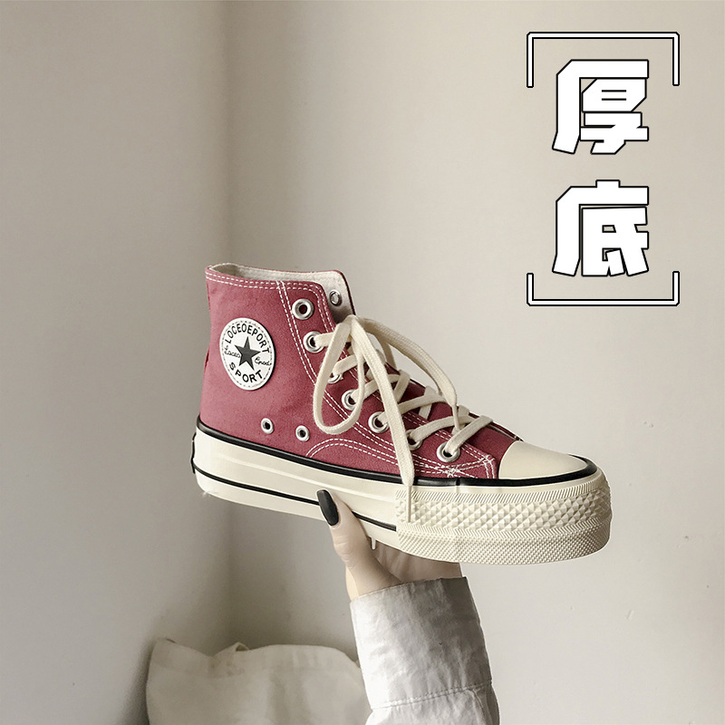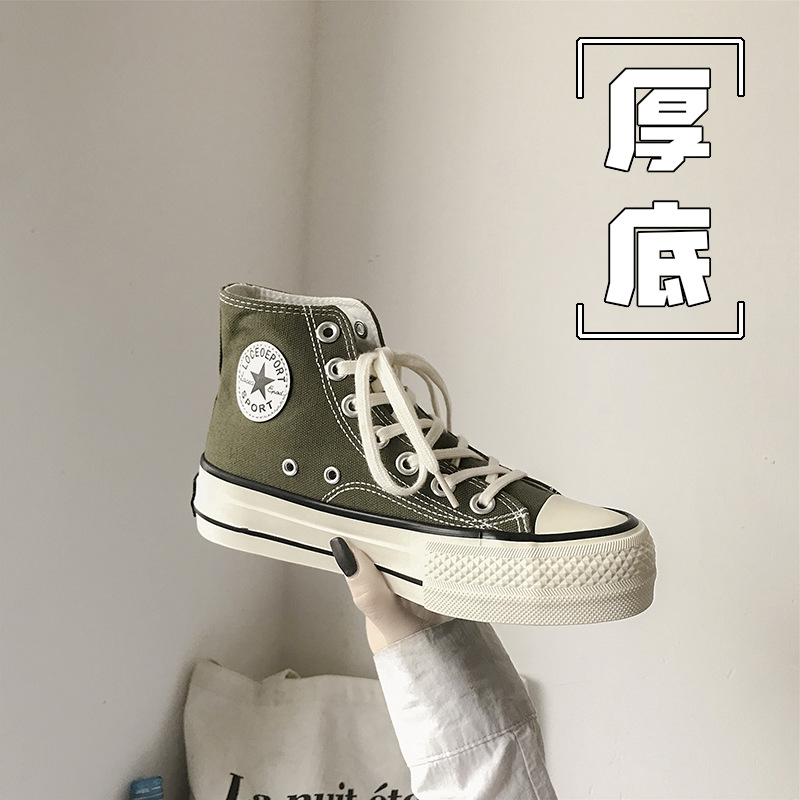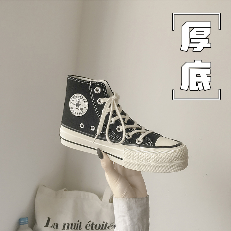 厚底高帮帆布鞋女2024新款学生韩版ulzzang舒适复古ins板鞋潮